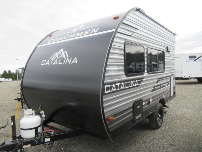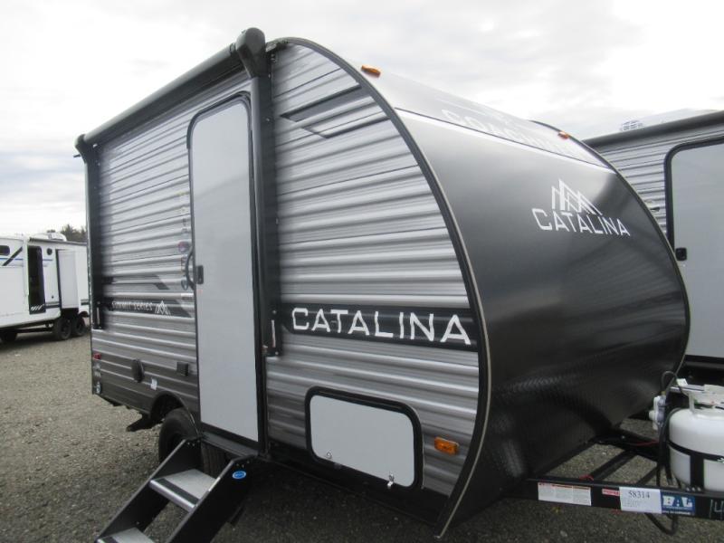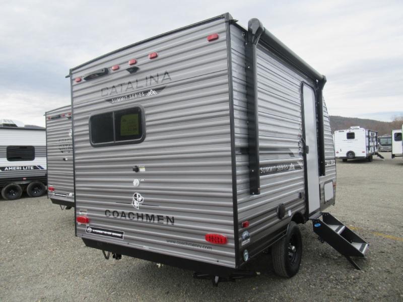 With any Catalina Summit Series 7' by Coachmen RV, you can create an easier adventure with the versatility and simplicity of the shorter lengths and lighter weights! Each includes a premium exterior graphics package, a smooth HD aluminum radius front, and EZ lube axles with leaf spring suspension. The exterior offers a heavy duty standard tongue jack, a diamond plate rock guard to protect against road debris, exterior RG-6 coax cabling and satellite prep, rear view camera prep, and flush mount baggage doors with radius corners for your outdoor gear. Inside, you will enjoy a premium JBL interior speaker, USB charging ports, seamless Thermofoil countertops throughout, a deep basin farm style sink for easy cleanup, and GE kitchen appliances. It's time to choose an affordable and maneuverable single axle trailer today!