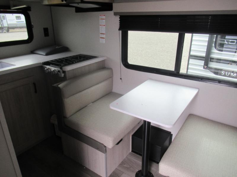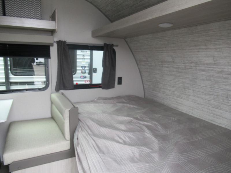 Lightweight camping is easier than you think with this travel trailer in tow! The front 54" x 74" bed will provide a great night's rest each night. There is a handy shelf above the front bed for your belongings plus overhead storage in the kitchen area. A private bath includes a 24" x 32" shower and a toilet with a mirror behind it so you can freshen up each day. You'll also find a two burner cooktop and microwave oven to make meals each day plus a 3.3 cu. ft. 12V refrigerator for food storage!