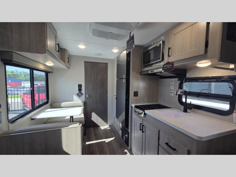 With any Catalina Summit Series 7' by Coachmen RV, you can create an easier adventure with the versatility and simplicity of the shorter lengths and lighter weights! Each includes a premium exterior graphics package, a smooth HD aluminum radius front, and EZ lube axles with leaf spring suspension. The exterior offers a heavy duty standard tongue jack, a diamond plate rock guard to protect against road debris, exterior RG-6 coax cabling and satellite prep, rear view camera prep, and flush mount baggage doors with radius corners for your outdoor gear. Inside, you will enjoy a premium JBL interior speaker, USB charging ports, seamless Thermofoil countertops throughout, a deep basin farm style sink for easy cleanup, and GE kitchen appliances. It's time to choose an affordable and maneuverable single axle trailer today!