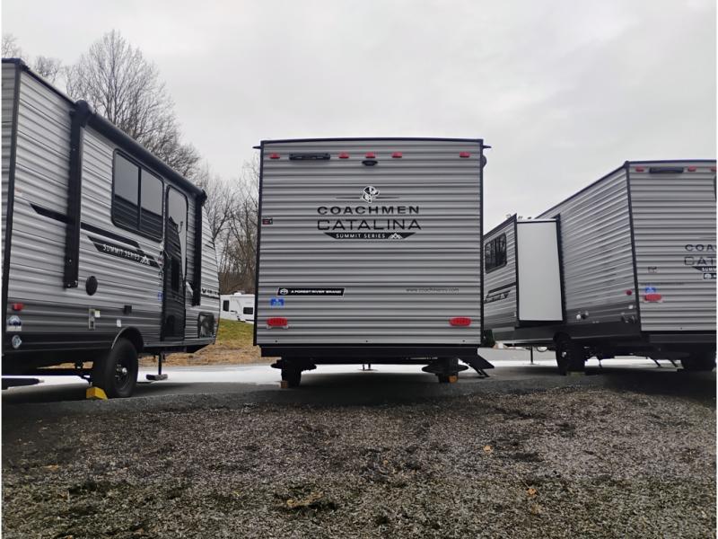 With any Catalina Summit Series 7' by Coachmen RV, you can create an easier adventure with the versatility and simplicity of the shorter lengths and lighter weights! Each includes a premium exterior graphics package, a smooth HD aluminum radius front, and EZ lube axles with leaf spring suspension. The exterior offers a heavy duty standard tongue jack, a diamond plate rock guard to protect against road debris, exterior RG-6 coax cabling and satellite prep, rear view camera prep, and flush mount baggage doors with radius corners for your outdoor gear. Inside, you will enjoy a premium JBL interior speaker, USB charging ports, seamless Thermofoil countertops throughout, a deep basin farm style sink for easy cleanup, and GE kitchen appliances. It's time to choose an affordable and maneuverable single axle trailer today!