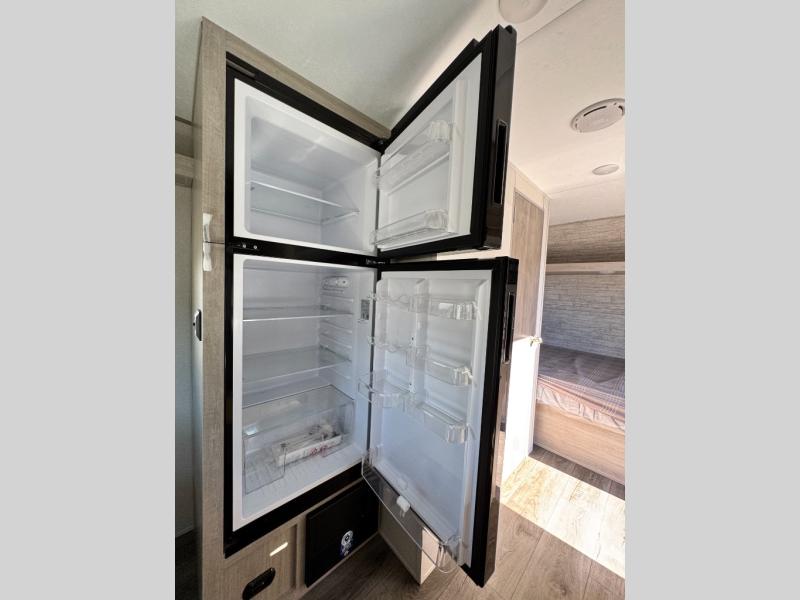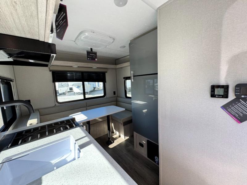 Equipped for modern adventures, this unit features a GE 10.7 cu. ft. 12V refrigerator, a GE 60K BTU Tankless On-Demand Water Heater, and an electric awning with customizable LED lighting. The construction quality is superior, featuring 5/8" tongue-and-groove StableDeck flooring and a seamless Alpha roof membrane. Whether you are a first-time buyer or an experienced traveler looking to downsize, the 154RDX offers everything you need for comfortable trips without the unnecessary weight.