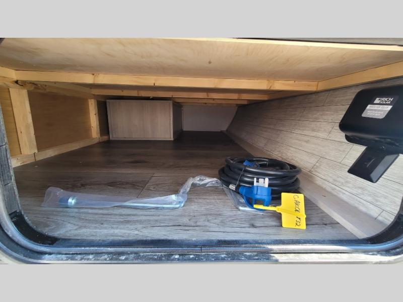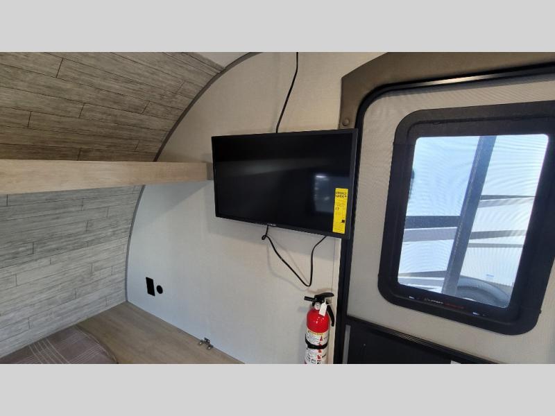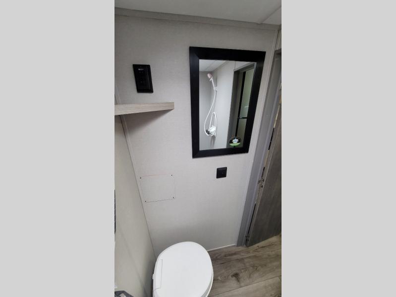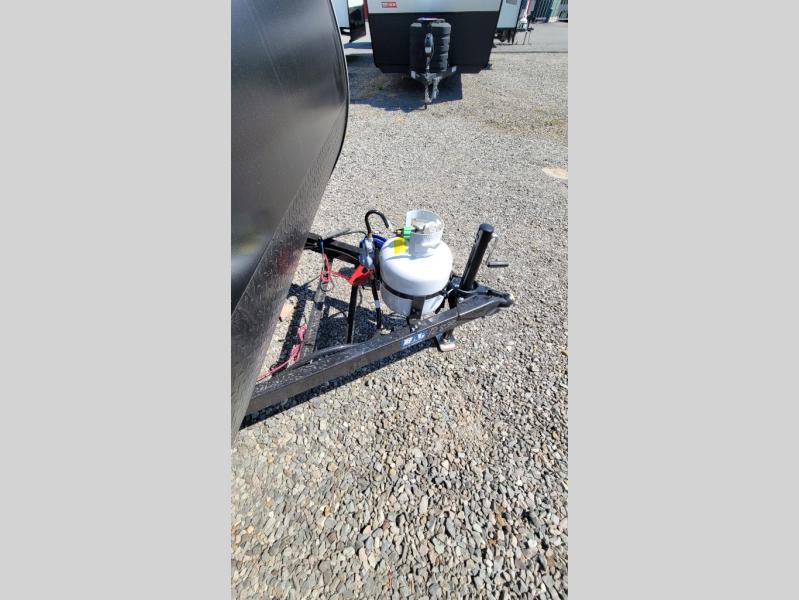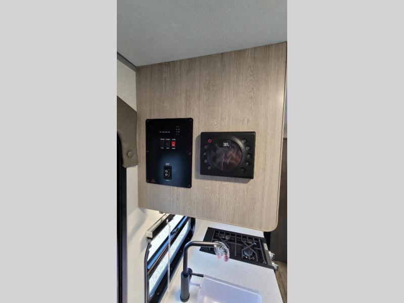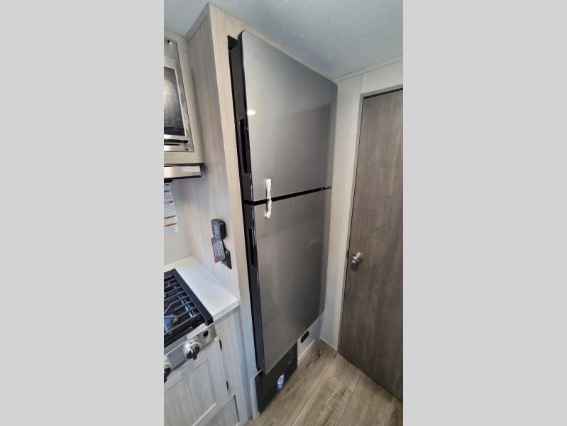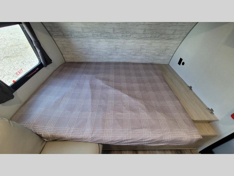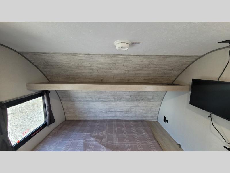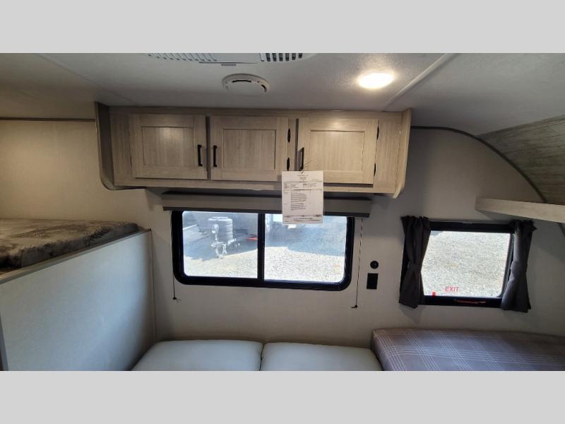 This travel trailers is perfect for a young family or smaller group. You can easily sleep four or more with the rear set of bunk beds and queen bed up front. There is also a 60" sofa for inside down-time, as well as complete kitchen and bath amenities so you can cook and stay clean while traveling. The rear corner bath features a toilet and 36" x 30" shower, and it's conveniently located next to the bunk beds which is great for little ones at night. Cooking inside will be easy with a GE stainless two-burner cooktop and single sink, plus there is also a GE microwave oven for snacks and things that you can easily warm up. If you plan to spend most of your time outdoors, you will find plenty of storage space in the front exterior storage compartment, and there is also plenty of storage inside as well.