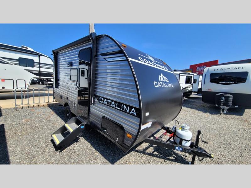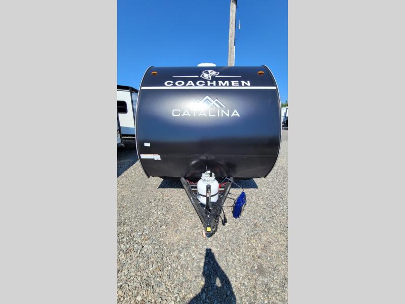 With any Catalina Summit Series 7' by Coachmen RV, you can create an easier adventure with the versatility and simplicity of the shorter lengths and lighter weights! Each includes a premium exterior graphics package, a smooth HD aluminum radius front, and EZ lube axles with leaf spring suspension. The exterior offers a heavy duty standard tongue jack, a diamond plate rock guard to protect against road debris, exterior RG-6 coax cabling and satellite prep, rear view camera prep, and flush mount baggage doors with radius corners for your outdoor gear. Inside, you will enjoy a premium JBL interior speaker, USB charging ports, seamless Thermofoil countertops throughout, a deep basin farm style sink for easy cleanup, and GE kitchen appliances. It's time to choose an affordable and maneuverable single axle trailer today!