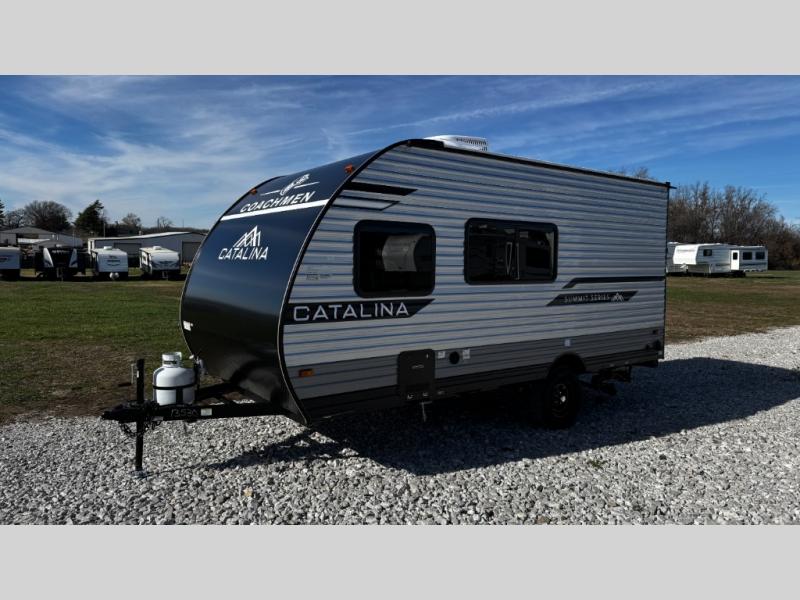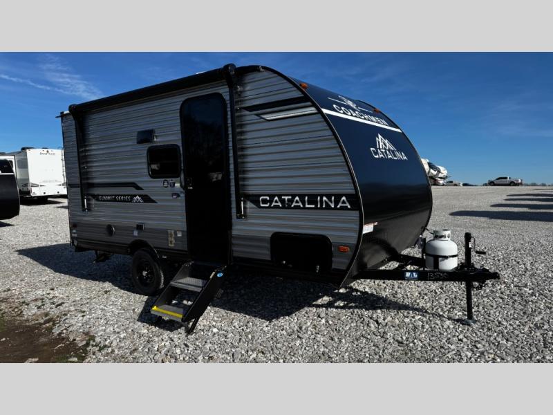 With any Catalina Summit Series 7' by Coachmen RV, you can create an easier adventure with the versatility and simplicity of the shorter lengths and lighter weights! Each includes a premium exterior graphics package, a smooth HD aluminum radius front, and EZ lube axles with leaf spring suspension. The exterior offers a heavy duty standard tongue jack, a diamond plate rock guard to protect against road debris, exterior RG-6 coax cabling and satellite prep, rear view camera prep, and flush mount baggage doors with radius corners for your outdoor gear. Inside, you will enjoy a premium JBL interior speaker, USB charging ports, seamless Thermofoil countertops throughout, a deep basin farm style sink for easy cleanup, and GE kitchen appliances. It's time to choose an affordable and maneuverable single axle trailer today!