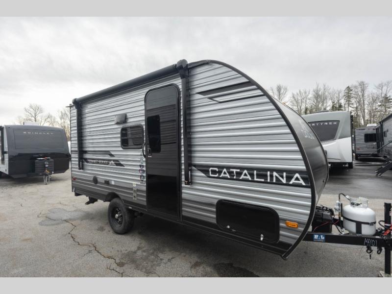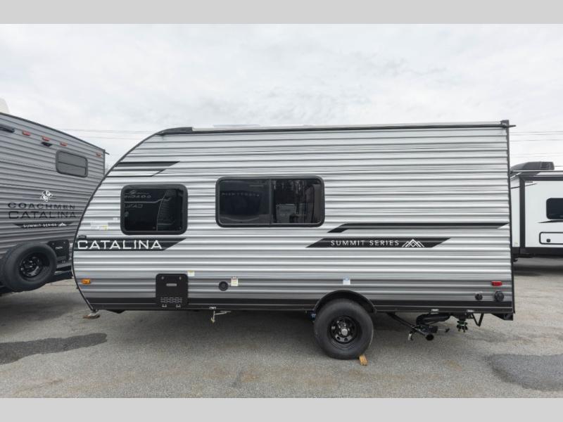 With any Catalina Summit Series 7' by Coachmen RV, you can create an easier adventure with the versatility and simplicity of the shorter lengths and lighter weights! Each includes a premium exterior graphics package, a smooth HD aluminum radius front, and EZ lube axles with leaf spring suspension. The exterior offers a heavy duty standard tongue jack, a diamond plate rock guard to protect against road debris, exterior RG-6 coax cabling and satellite prep, rear view camera prep, and flush mount baggage doors with radius corners for your outdoor gear. Inside, you will enjoy a premium JBL interior speaker, USB charging ports, seamless Thermofoil countertops throughout, a deep basin farm style sink for easy cleanup, and GE kitchen appliances. It's time to choose an affordable and maneuverable single axle trailer today!