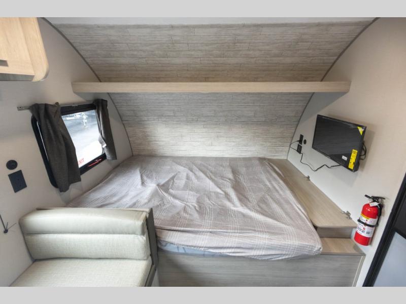 This travel trailers is perfect for a young family or smaller group. You can easily sleep four or more with the rear set of bunk beds and queen bed up front. There is also a booth dinette for inside down-time, as well as complete kitchen and bath amenities so you can cook and stay clean while traveling. The rear corner bath features a toilet and 36" x 30" shower, and it's conveniently located next to the bunk beds which is great for little ones at night. Cooking inside will be easy with a GE stainless two-burner cooktop and single sink, plus there is also a GE microwave oven for snacks and things that you can easily warm up. If you plan to spend most of your time outdoors, you will find plenty of storage space in the front exterior storage compartment, and there is also plenty of storage inside as well.