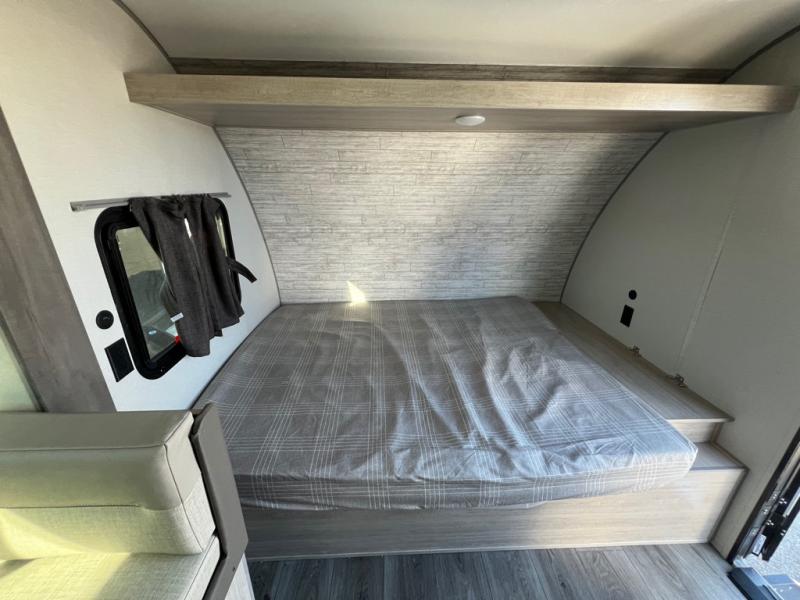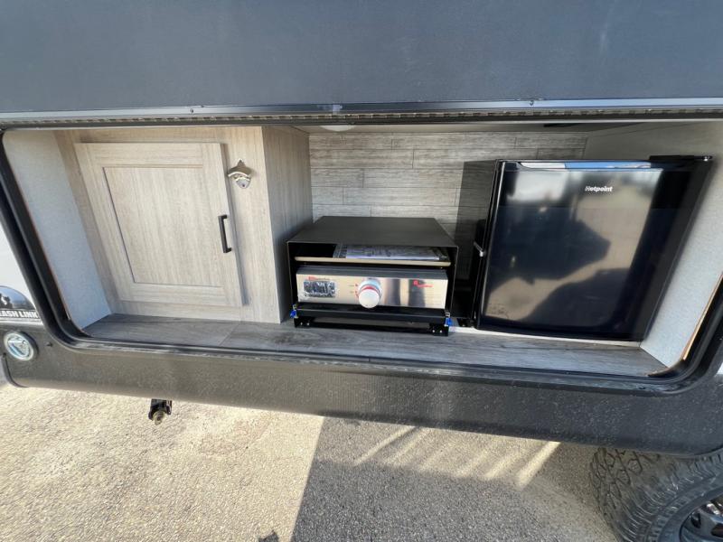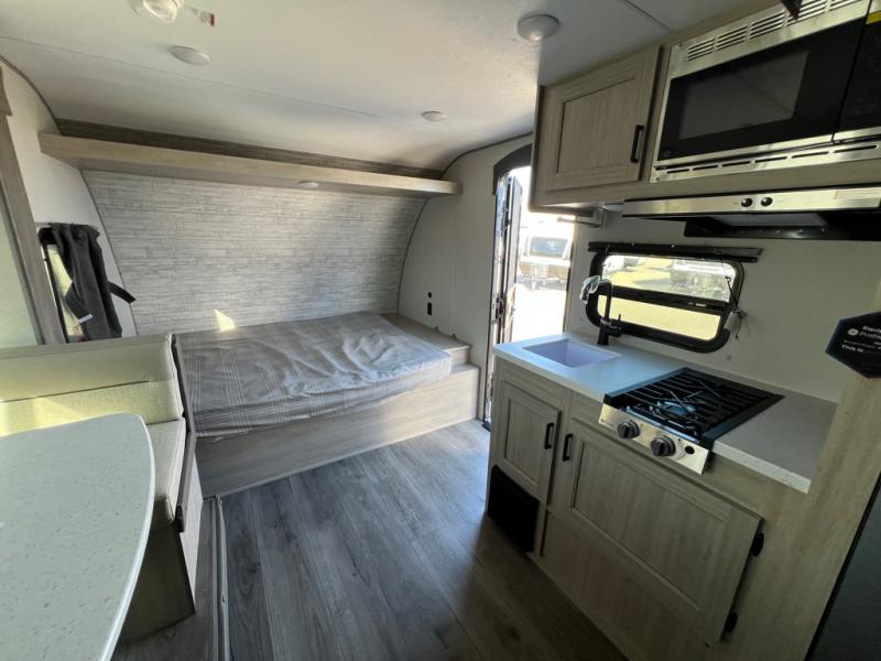 This spacious travel trailer can sleep eight campers each night thanks to the double-size bunks in the back, the U-shaped dinette within the slide out, and the queen bed up front! You can easily make meals for your crew with the two burner cooktop and microwave oven, and leftovers can go in the 10.7 cu. ft. 12V refrigerator! After you've cleaned up in the full bath, head outdoors to relax under the 15' power awning with multicolor LED lights and a remote!
