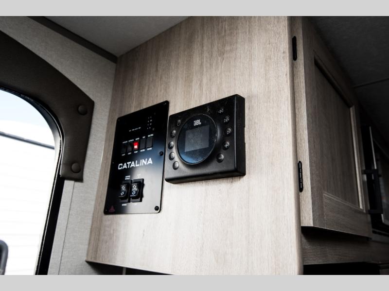 With any Catalina Summit Series 7' by Coachmen RV, you can create an easier adventure with the versatility and simplicity of the shorter lengths and lighter weights! Each includes a premium exterior graphics package, a smooth HD aluminum radius front, and EZ lube axles with leaf spring suspension. The exterior offers a heavy duty standard tongue jack, a diamond plate rock guard to protect against road debris, exterior RG-6 coax cabling and satellite prep, rear view camera prep, and flush mount baggage doors with radius corners for your outdoor gear. Inside, you will enjoy a premium JBL interior speaker, USB charging ports, seamless Thermofoil countertops throughout, a deep basin farm style sink for easy cleanup, and GE kitchen appliances. It's time to choose an affordable and maneuverable single axle trailer today!