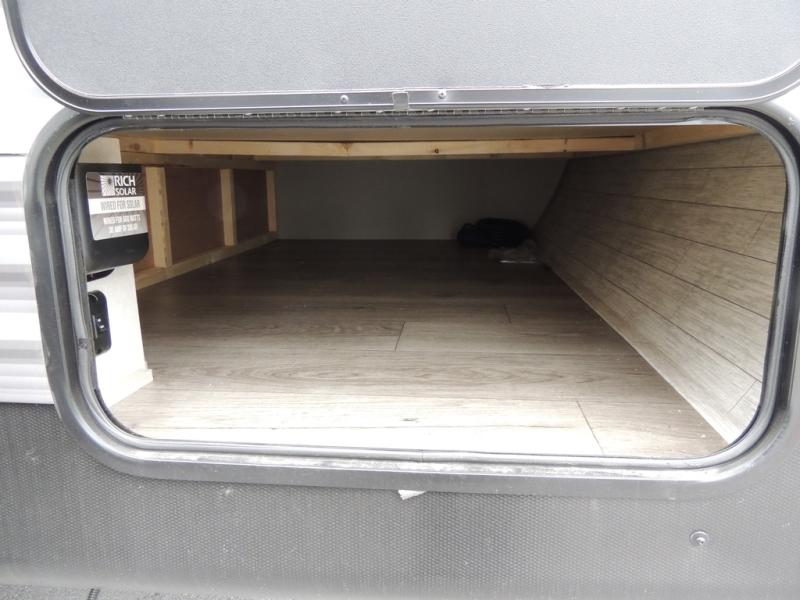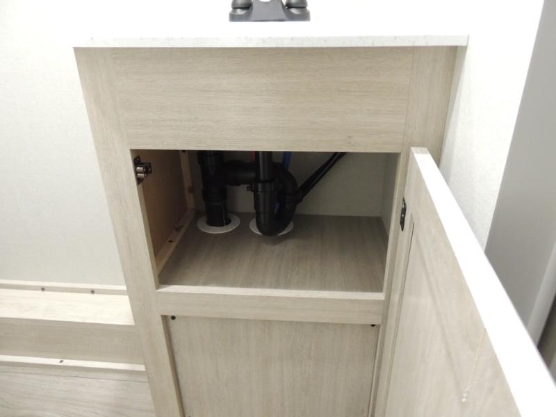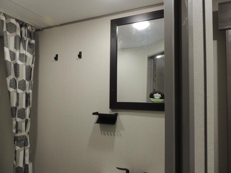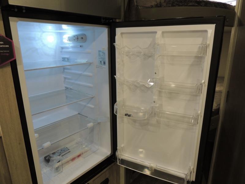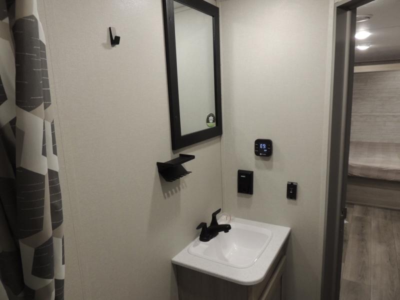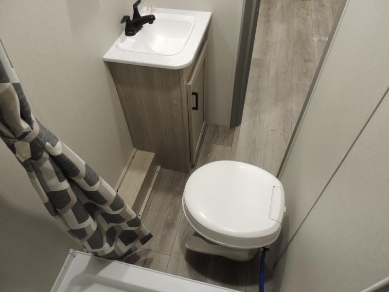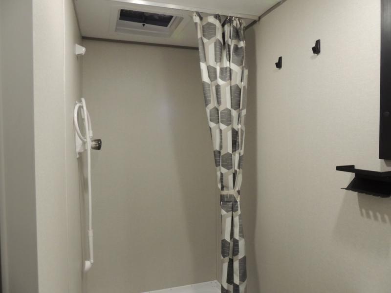 This spacious travel trailer can sleep eight campers each night thanks to the double-size bunks in the back, the U-shaped dinette within the slide out, and the queen bed up front! You can easily make meals for your crew with the two burner cooktop and microwave oven, and leftovers can go in the 10.7 cu. ft. 12V refrigerator! After you've cleaned up in the full bath, head outdoors to relax under the 15' power awning with multicolor LED lights and a remote!