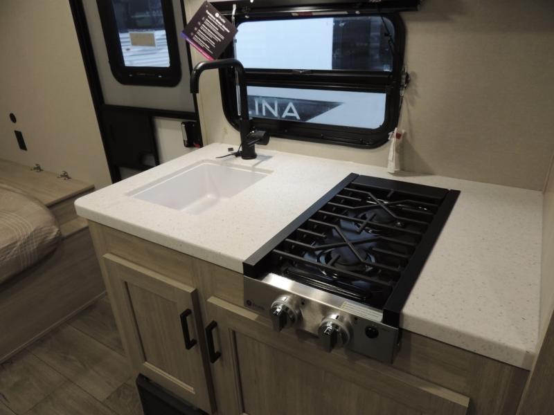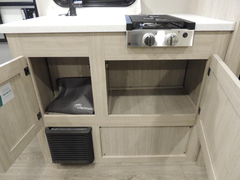 With any Catalina Summit Series 7' by Coachmen RV, you can create an easier adventure with the versatility and simplicity of the shorter lengths and lighter weights! Each includes a premium exterior graphics package, a smooth HD aluminum radius front, and EZ lube axles with leaf spring suspension. The exterior offers a heavy duty standard tongue jack, a diamond plate rock guard to protect against road debris, exterior RG-6 coax cabling and satellite prep, rear view camera prep, and flush mount baggage doors with radius corners for your outdoor gear. Inside, you will enjoy a premium JBL interior speaker, USB charging ports, seamless Thermofoil countertops throughout, a deep basin farm style sink for easy cleanup, and GE kitchen appliances. It's time to choose an affordable and maneuverable single axle trailer today!