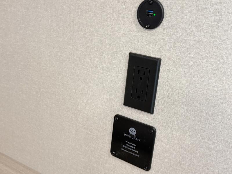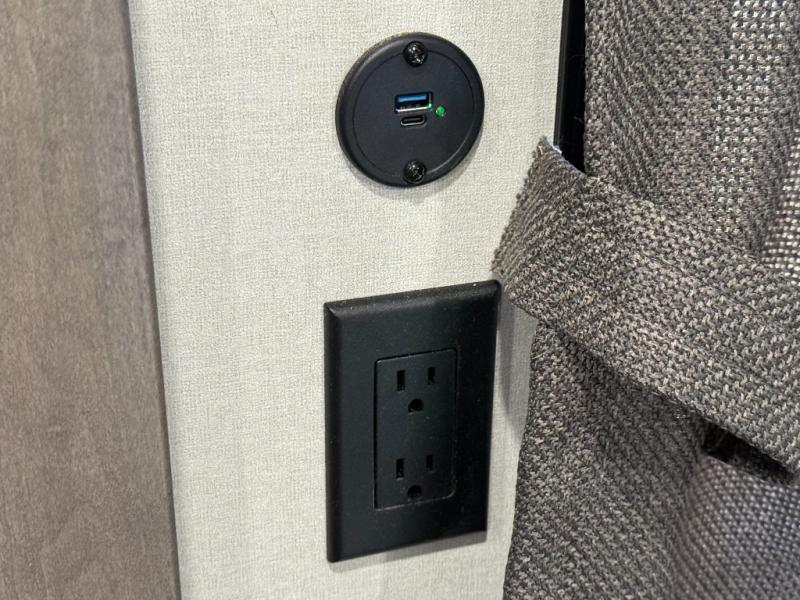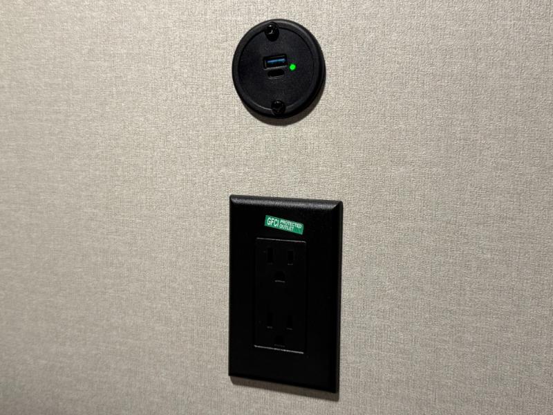 USB charging ports throughout (kitchen, near bunks, in bedroom)