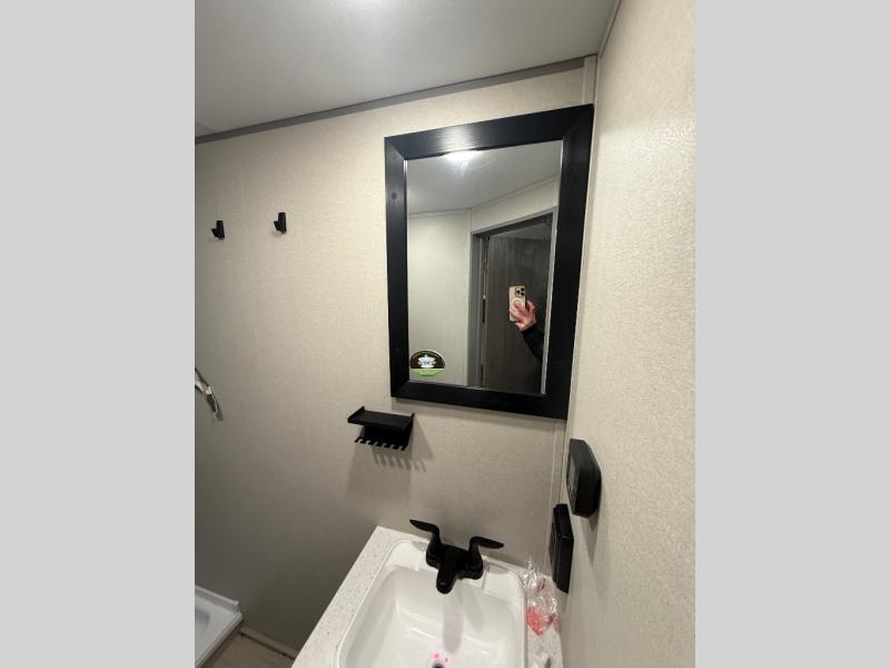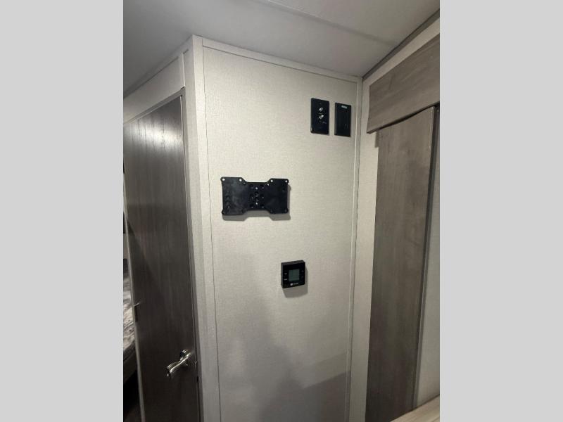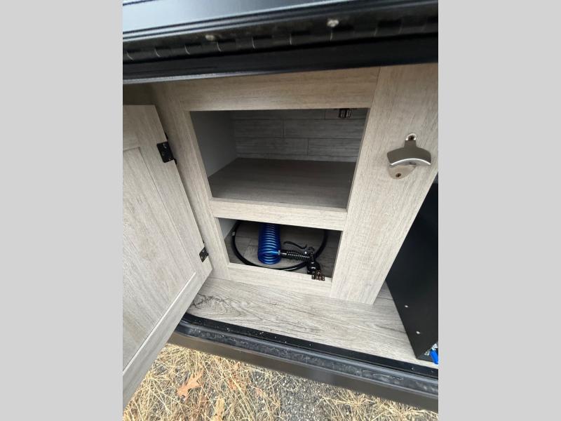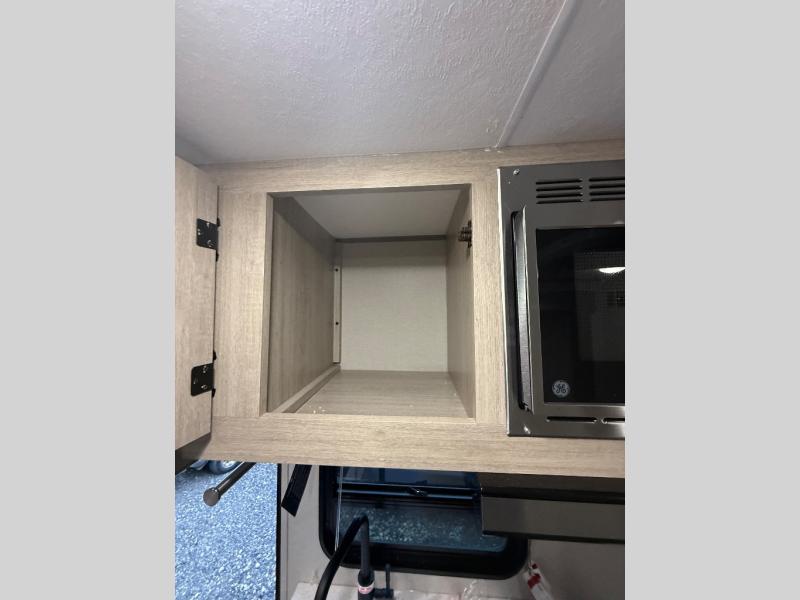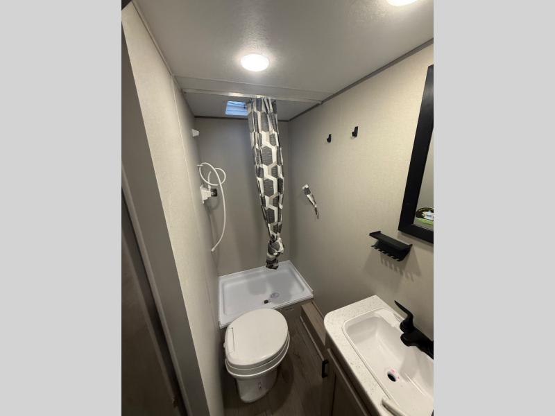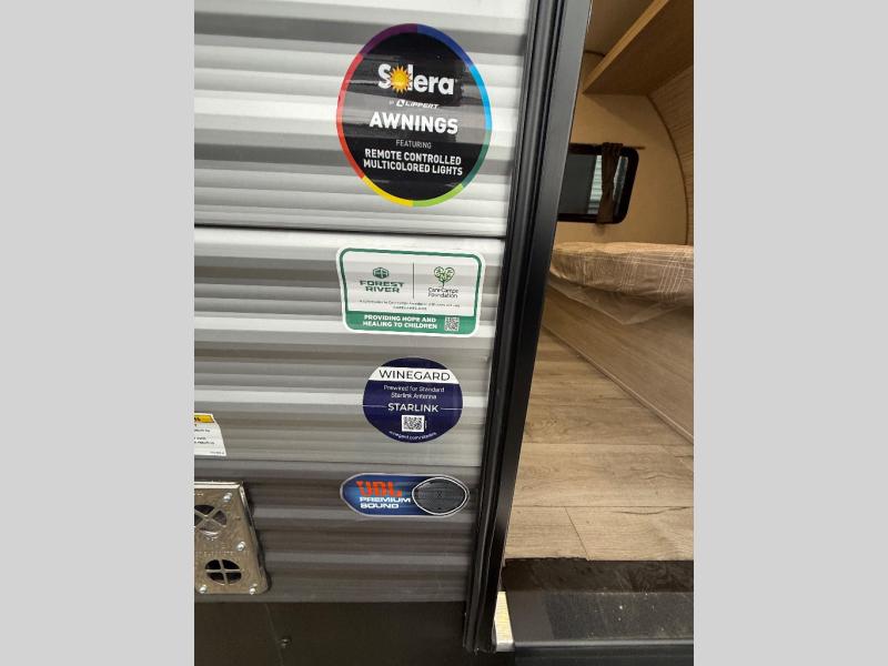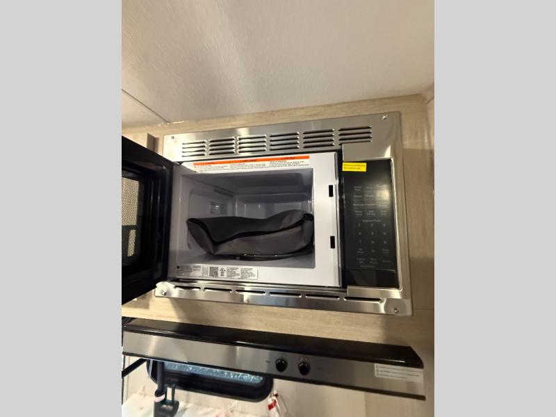 This spacious travel trailer can sleep eight campers each night thanks to the double-size bunks in the back, the U-shaped dinette within the slide out, and the queen bed up front! You can easily make meals for your crew with the two burner cooktop and microwave oven, and leftovers can go in the 10.7 cu. ft. 12V refrigerator! After you've cleaned up in the full bath, head outdoors to relax under the 15' power awning with multicolor LED lights and a remote!