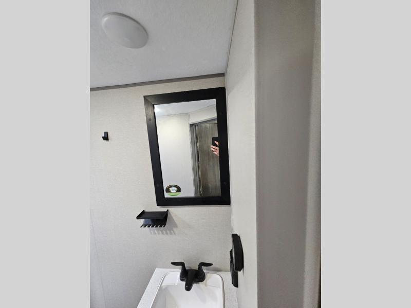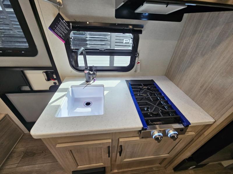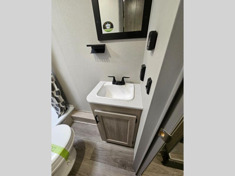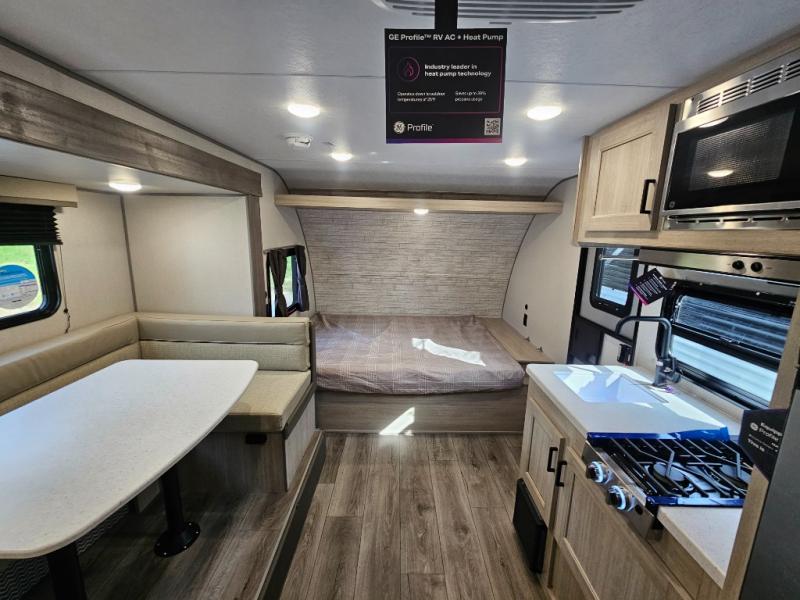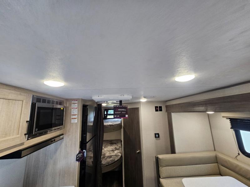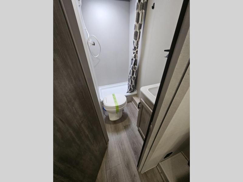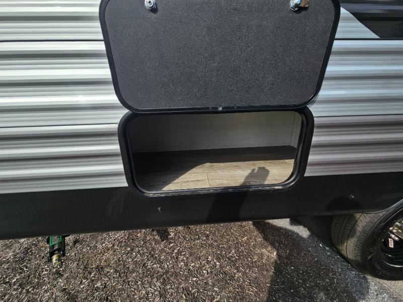 This spacious travel trailer can sleep eight campers each night thanks to the double-size bunks in the back, the U-shaped dinette within the slide out, and the queen bed up front! You can easily make meals for your crew with the two burner cooktop and microwave oven, and leftovers can go in the 10.7 cu. ft. 12V refrigerator! After you've cleaned up in the full bath, head outdoors to relax under the 15' power awning with multicolor LED lights and a remote!