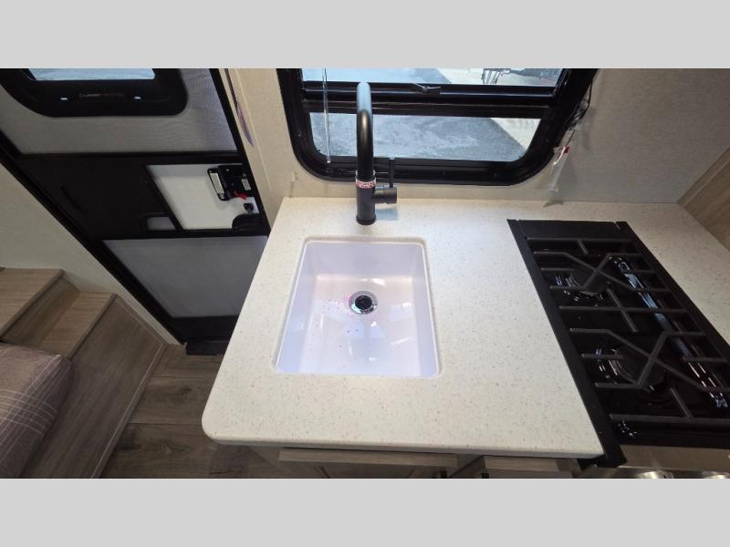 With any Catalina Summit Series 7' by Coachmen RV, you can create an easier adventure with the versatility and simplicity of the shorter lengths and lighter weights! Each includes a premium exterior graphics package, a smooth HD aluminum radius front, and EZ lube axles with leaf spring suspension. The exterior offers a heavy duty standard tongue jack, a diamond plate rock guard to protect against road debris, exterior RG-6 coax cabling and satellite prep, rear view camera prep, and flush mount baggage doors with radius corners for your outdoor gear. Inside, you will enjoy a premium JBL interior speaker, USB charging ports, seamless Thermofoil countertops throughout, a deep basin farm style sink for easy cleanup, and GE kitchen appliances. It's time to choose an affordable and maneuverable single axle trailer today!