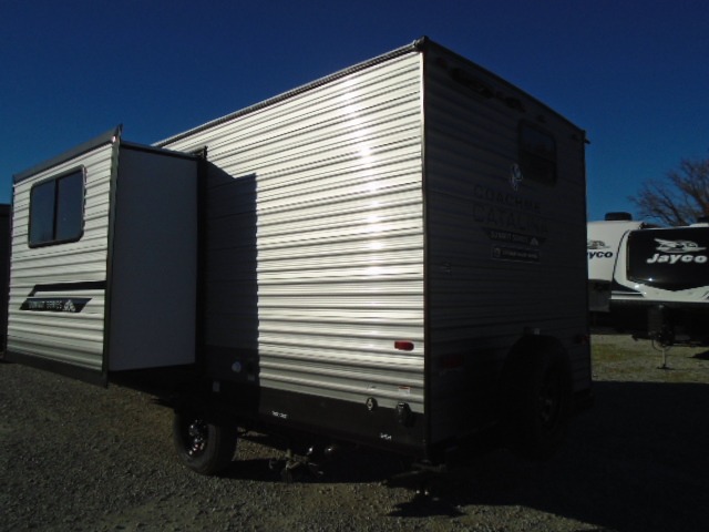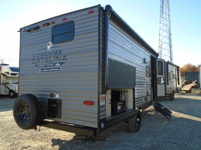 With any Catalina Summit Series 7' by Coachmen RV, you can create an easier adventure with the versatility and simplicity of the shorter lengths and lighter weights! Each includes a premium exterior graphics package, a smooth HD aluminum radius front, and EZ lube axles with leaf spring suspension. The exterior offers a heavy duty standard tongue jack, a diamond plate rock guard to protect against road debris, exterior RG-6 coax cabling and satellite prep, rear view camera prep, and flush mount baggage doors with radius corners for your outdoor gear. Inside, you will enjoy a premium JBL interior speaker, USB charging ports, seamless Thermofoil countertops throughout, a deep basin farm style sink for easy cleanup, and GE kitchen appliances. It's time to choose an affordable and maneuverable single axle trailer today!
