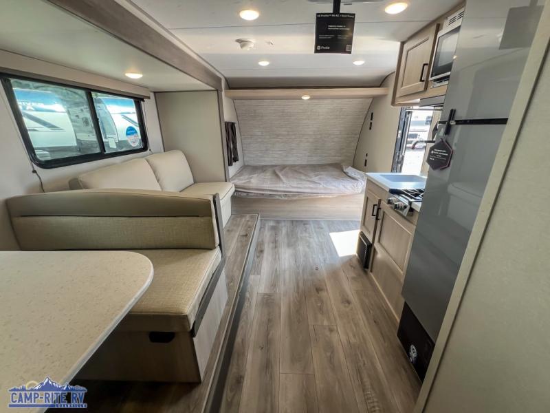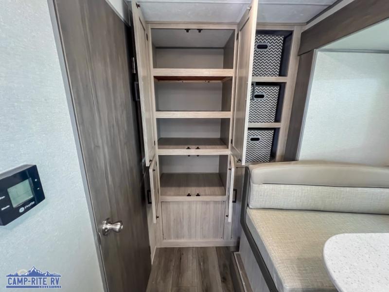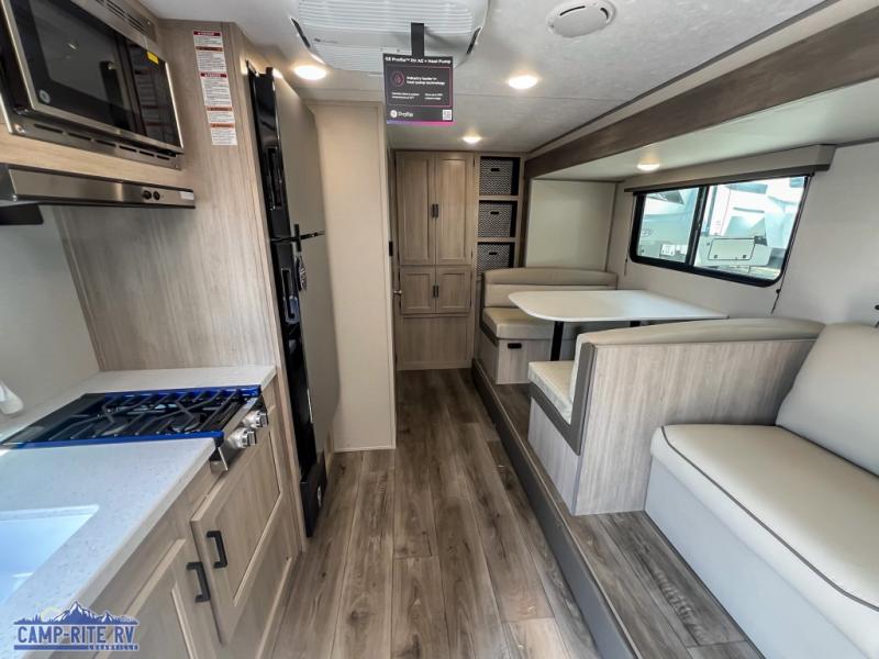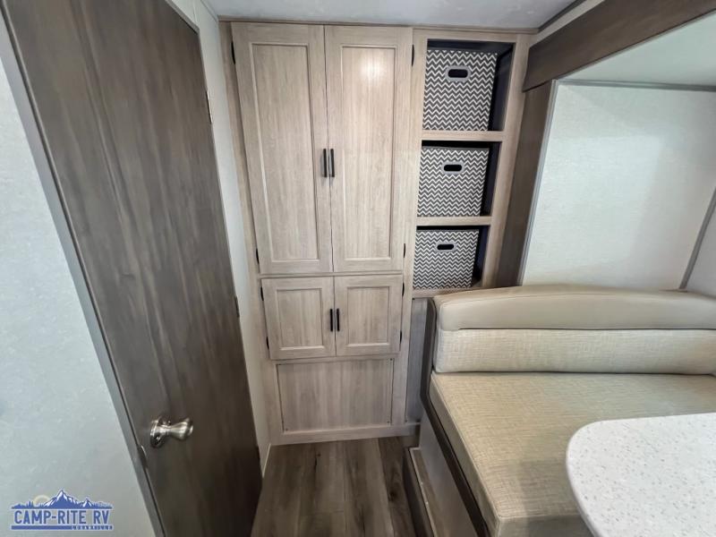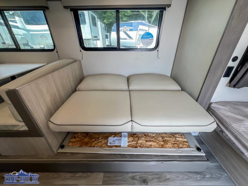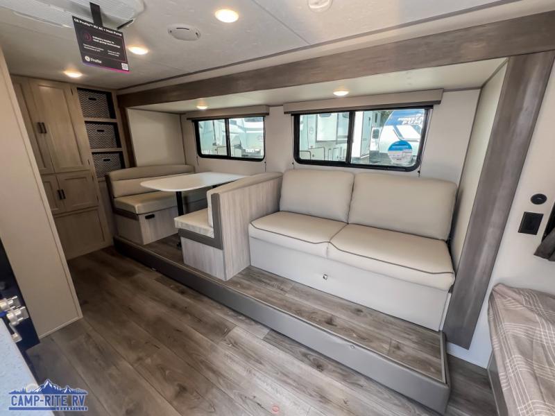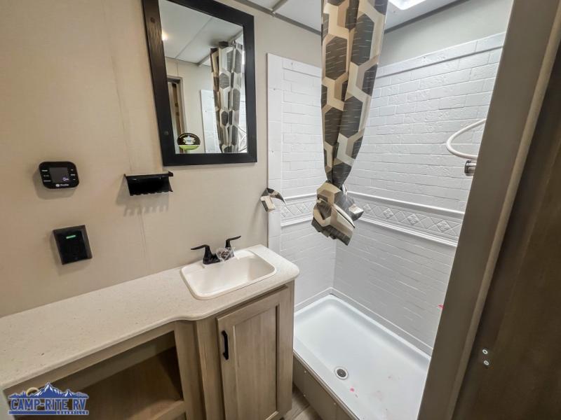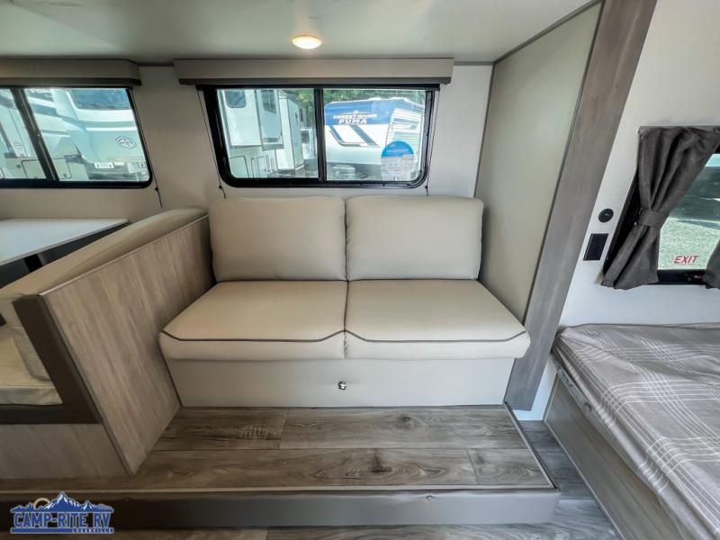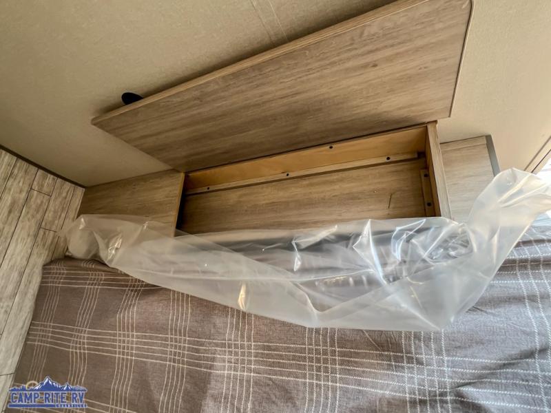 This travel trailer will be the best RV vehicle for you. Built to offer the ultimate comfort, this unit has a 60” jack-knife where you will be able to rest like royalty due to its undeniable comfort and the spacious queen bed will make it hard to wake up in the morning. The 38” dinette is the perfect feature for enjoying all your delicious meals prepared in the convenient kitchen which boasts a microwave, refrigerator, two-burner cooktop, sink and pantry storage. At the end of the day, relax in the incredible full bathroom featuring a 24” x 36” tub/shower, ideal for taking care of yourself.