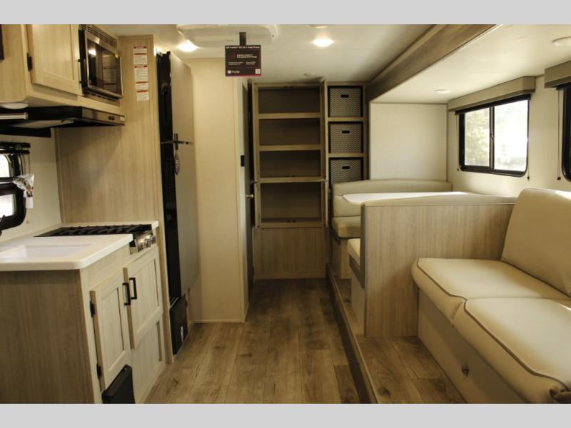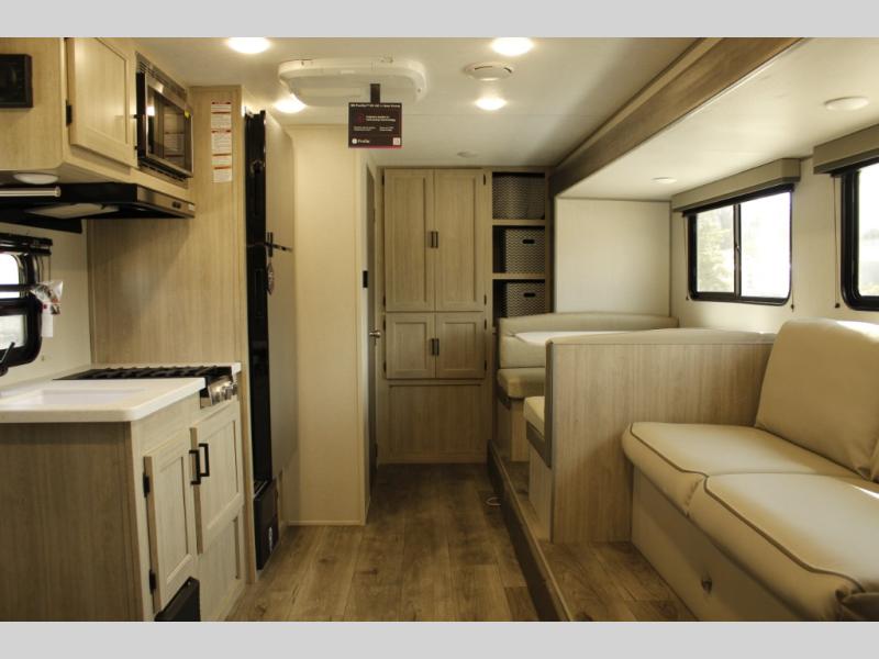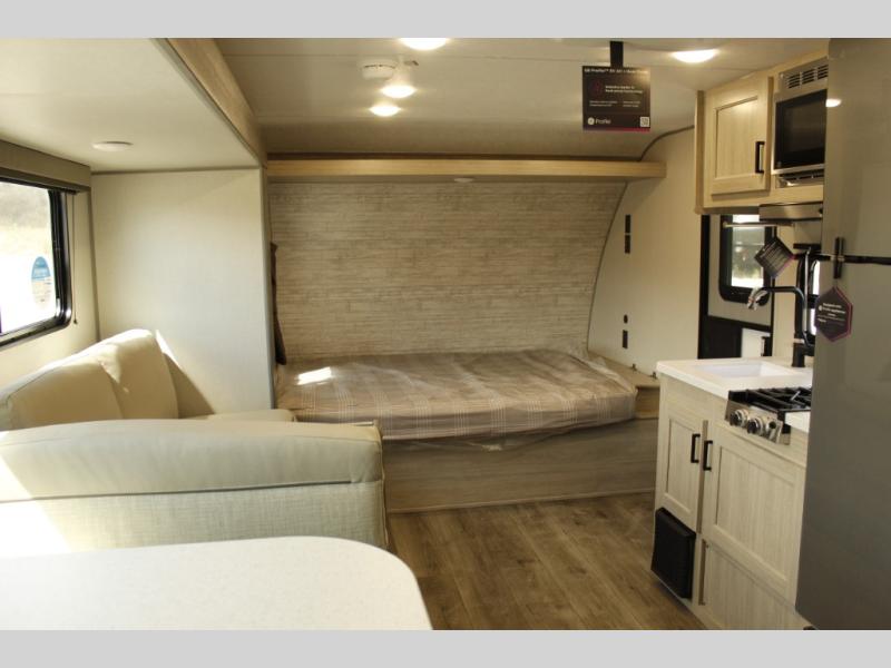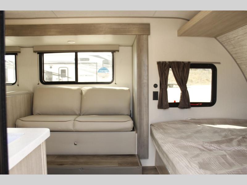 This travel trailer will be the best RV vehicle for you. Built to offer the ultimate comfort, this unit has a 60” jack-knife where you will be able to rest like royalty due to its undeniable comfort and the spacious queen bed will make it hard to wake up in the morning. The 38” dinette is the perfect feature for enjoying all your delicious meals prepared in the convenient kitchen which boasts a microwave, refrigerator, two-burner cooktop, sink and pantry storage. At the end of the day, relax in the incredible full bathroom featuring a 24” x 36” tub/shower, ideal for taking care of yourself.