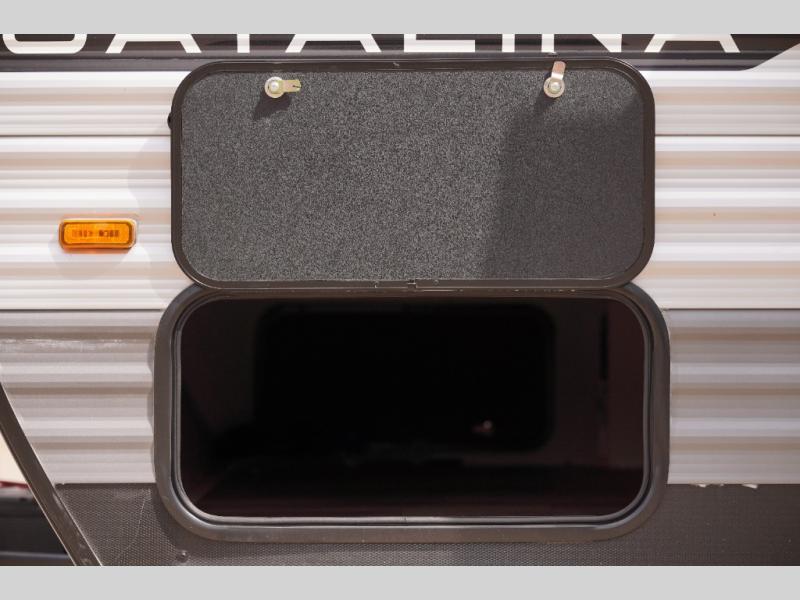 With any Catalina Summit Series 7' by Coachmen RV, you can create an easier adventure with the versatility and simplicity of the shorter lengths and lighter weights! Each includes a premium exterior graphics package, a smooth HD aluminum radius front, and Dexter EZ lube axles with leaf spring suspension. The exterior offers a heavy duty standard tongue jack, a diamond plate rock guard to protect against road debris, exterior RG-6 coax cabling and satellite prep, rear view camera prep, and flush mount baggage doors with radius corners for your outdoor gear. Inside, you will enjoy premium JBL interior speakers, USB charging ports, seamless Thermofoil countertops throughout, a deep basin farm style sink for easy cleanup, and GE kitchen appliances. It's time to choose an affordable and maneuverable single axle trailer today!
