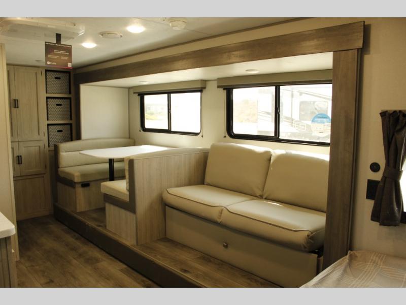 This travel trailer will be the best RV vehicle for you. Built to offer the ultimate comfort, this unit has a 60” jack-knife where you will be able to rest like royalty due to its undeniable comfort and the spacious queen bed will make it hard to wake up in the morning. The 38” dinette is the perfect feature for enjoying all your delicious meals prepared in the convenient kitchen which boasts a microwave, refrigerator, two-burner cooktop, sink and pantry storage. At the end of the day, relax in the incredible full bathroom featuring a 24” x 36” tub/shower, ideal for taking care of yourself.