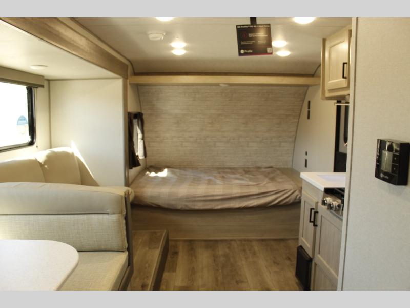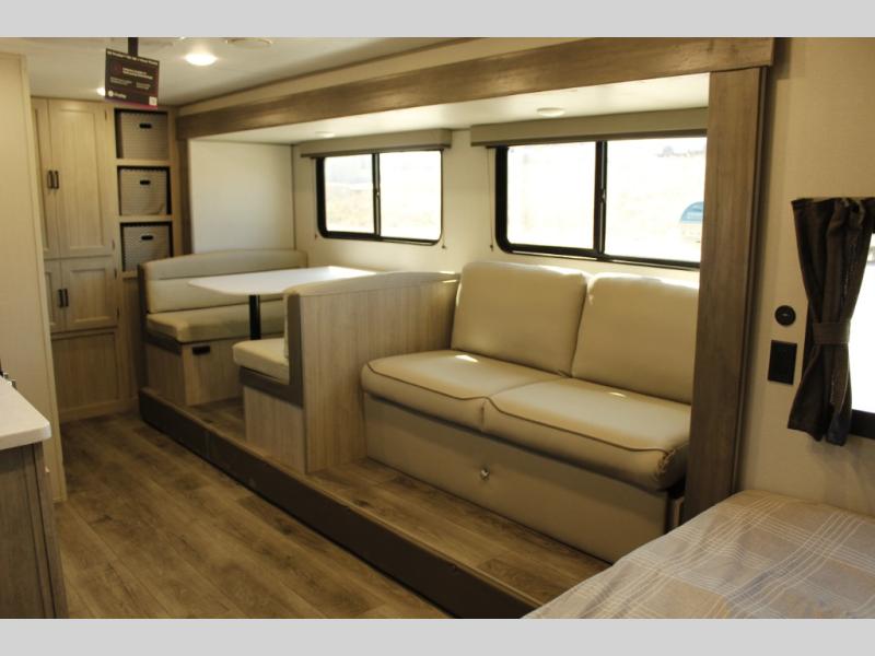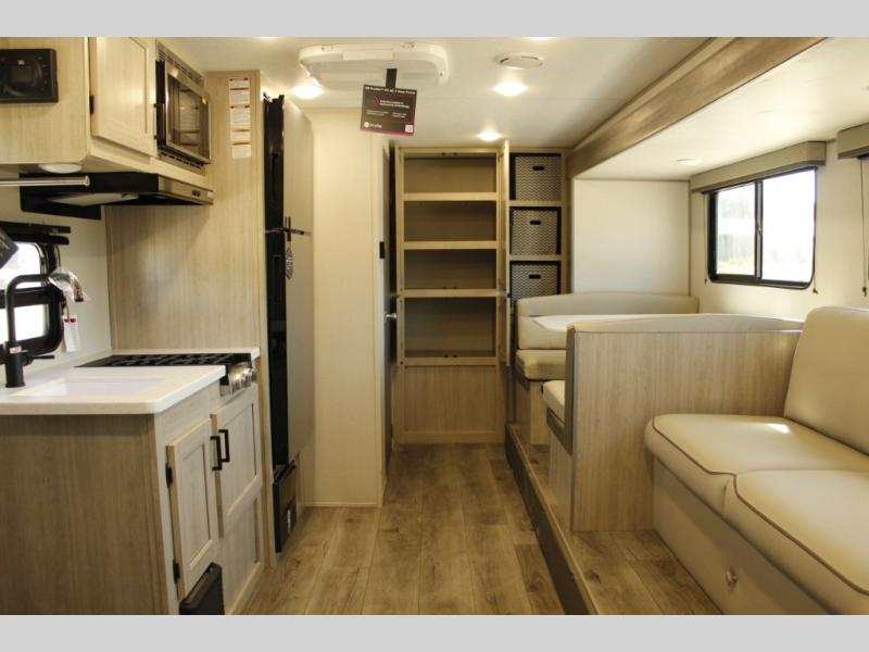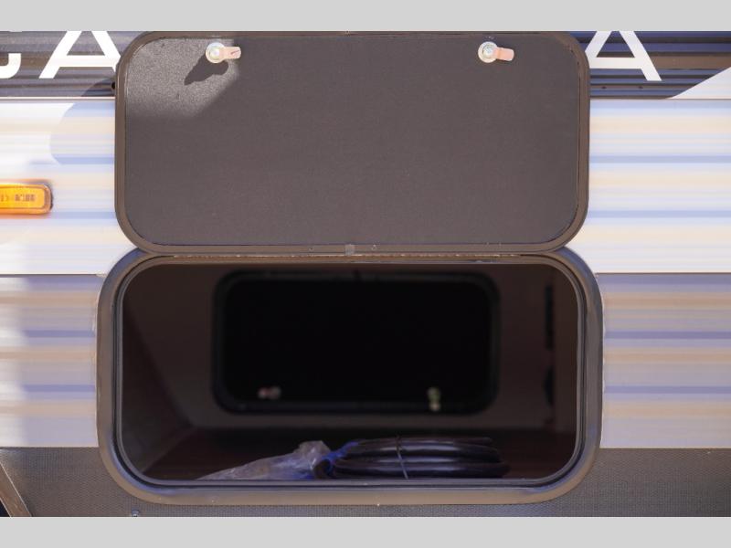 This travel trailer will be the best RV vehicle for you. Built to offer the ultimate comfort, this unit has a 60” jack-knife where you will be able to rest like royalty due to its undeniable comfort and the spacious queen bed will make it hard to wake up in the morning. The 38” dinette is the perfect feature for enjoying all your delicious meals prepared in the convenient kitchen which boasts a microwave, refrigerator, two-burner cooktop, sink and pantry storage. At the end of the day, relax in the incredible full bathroom featuring a 24” x 36” tub/shower, ideal for taking care of yourself.