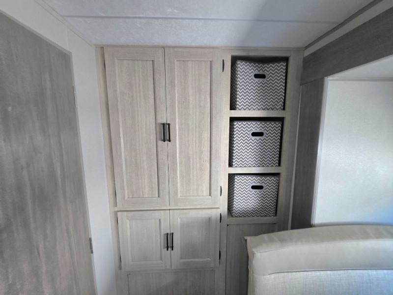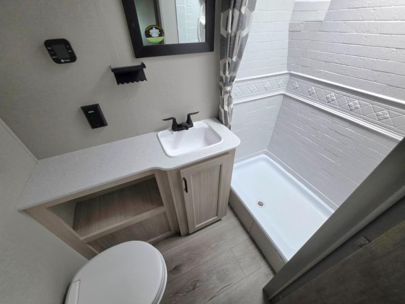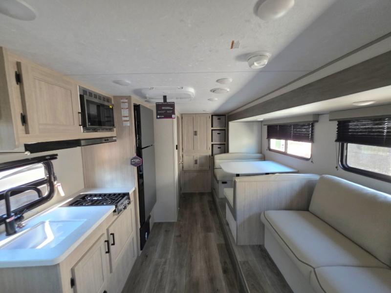 This travel trailer will be the best RV vehicle for you. Built to offer the ultimate comfort, this unit has a 60” jack-knife where you will be able to rest like royalty due to its undeniable comfort and the spacious queen bed will make it hard to wake up in the morning. The 38” dinette is the perfect feature for enjoying all your delicious meals prepared in the convenient kitchen which boasts a microwave, refrigerator, two-burner cooktop, sink and pantry storage. At the end of the day, relax in the incredible full bathroom featuring a 24” x 36” tub/shower, ideal for taking care of yourself.