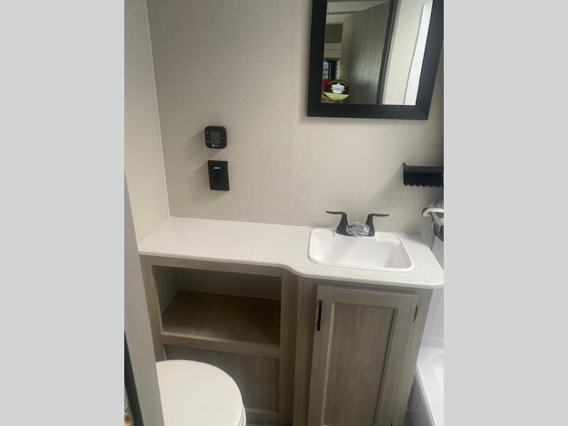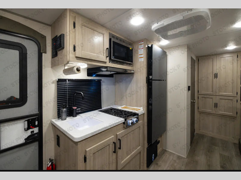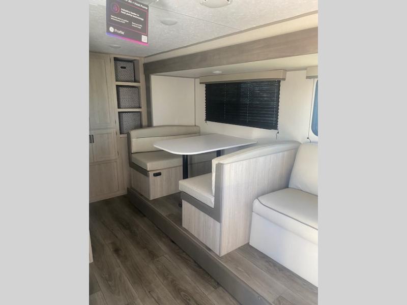 This travel trailer will be the best RV vehicle for you. Built to offer the ultimate comfort, this unit has a 60” jack-knife where you will be able to rest like royalty due to its undeniable comfort and the spacious queen bed will make it hard to wake up in the morning. The 38” dinette is the perfect feature for enjoying all your delicious meals prepared in the convenient kitchen which boasts a microwave, refrigerator, two-burner cooktop, sink and pantry storage. At the end of the day, relax in the incredible full bathroom featuring a 24” x 36” tub/shower, ideal for taking care of yourself.