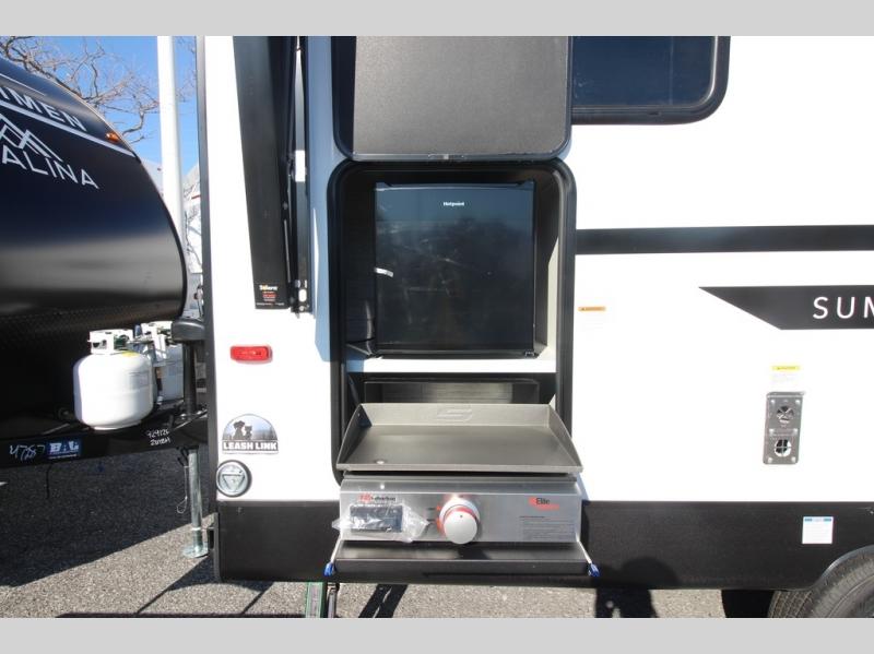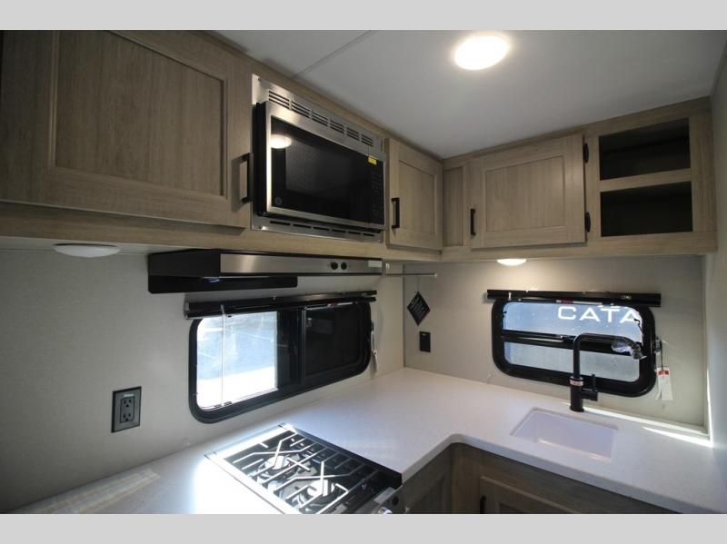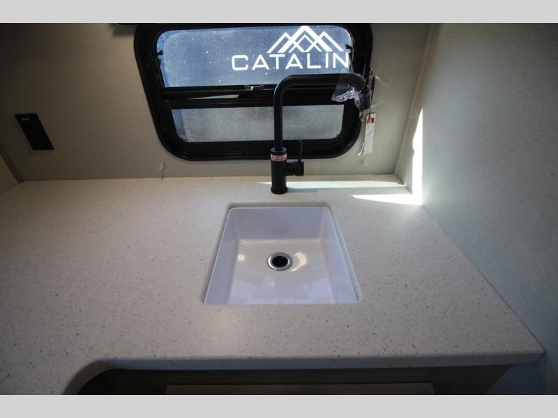 With any Catalina Summit Series 7' by Coachmen RV, you can create an easier adventure with the versatility and simplicity of the shorter lengths and lighter weights! Each includes a premium exterior graphics package, a smooth HD aluminum radius front, and Dexter EZ lube axles with leaf spring suspension. The exterior offers a heavy duty standard tongue jack, a diamond plate rock guard to protect against road debris, exterior RG-6 coax cabling and satellite prep, rear view camera prep, and flush mount baggage doors with radius corners for your outdoor gear. Inside, you will enjoy premium JBL interior speakers, USB charging ports, seamless Thermofoil countertops throughout, a deep basin farm style sink for easy cleanup, and GE kitchen appliances. It's time to choose an affordable and maneuverable single axle trailer today!