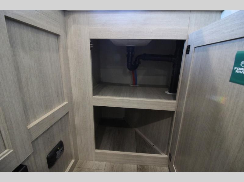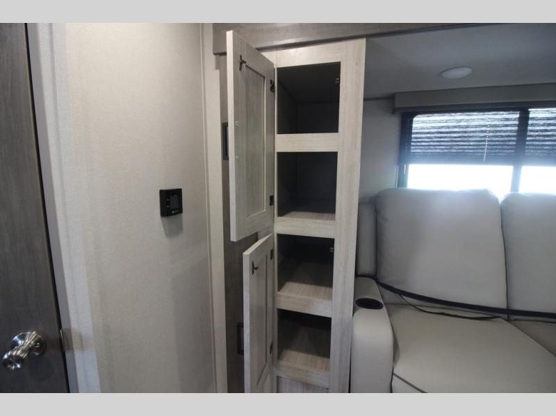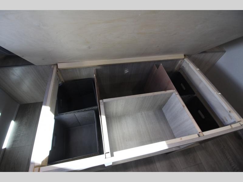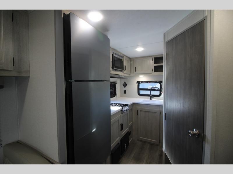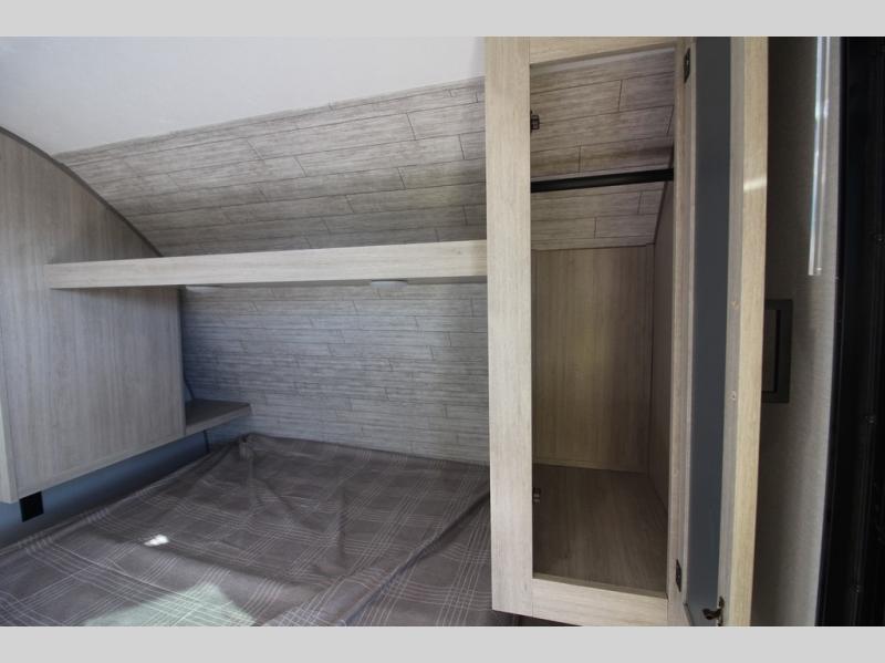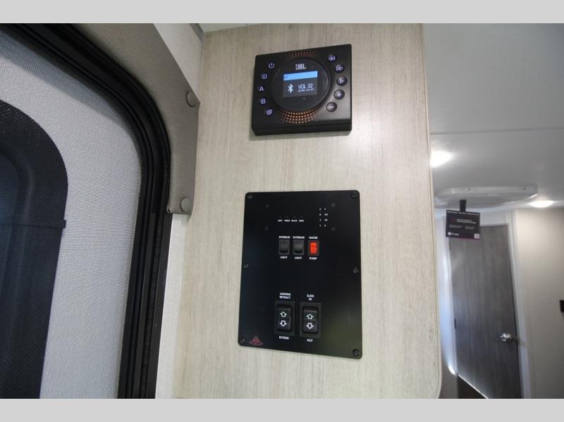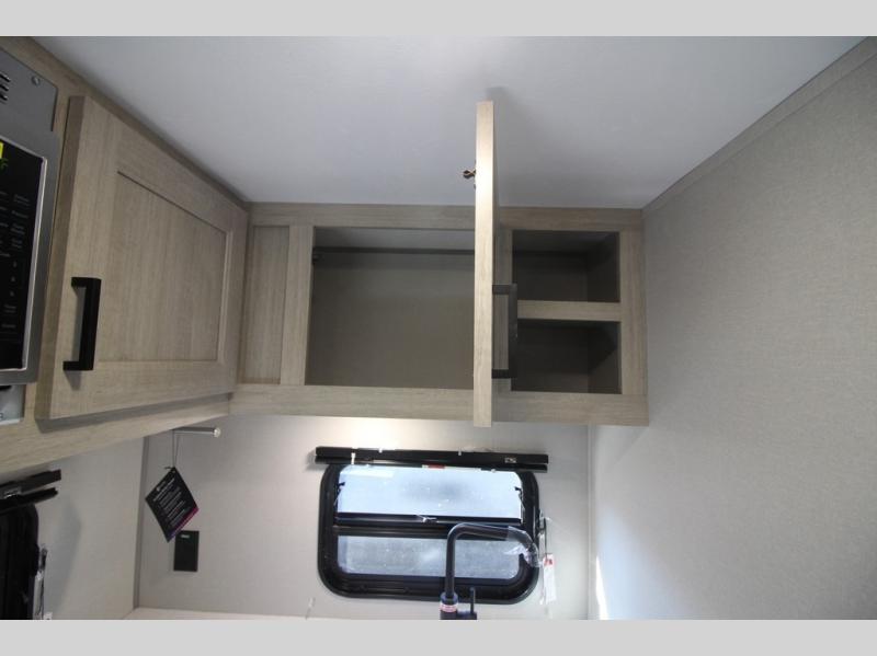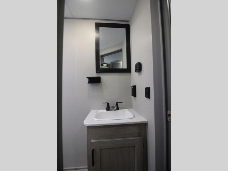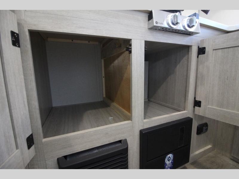 You will love how conventional this travel trailer is! If you want to travel for just a weekend or even more, you won't have to worry since you have all the amenities you need. This model has a queen bed with dual end wardrobes for some extra storage so you can neatly store your clothes. There is also a slide with theater seating, and a booth dinette to enjoy your favorite breakfast. A rear corner kitchen features everything you need to cook indoors, or you can head outside to use the outdoor Camper Kitchen with mini fridge and griddle. A rear corner bath features a 24" x 32" shower, toilet and sink. Outside, you'll find a 17' power awning with multicolor LED lights and exterior storage for camp gear.