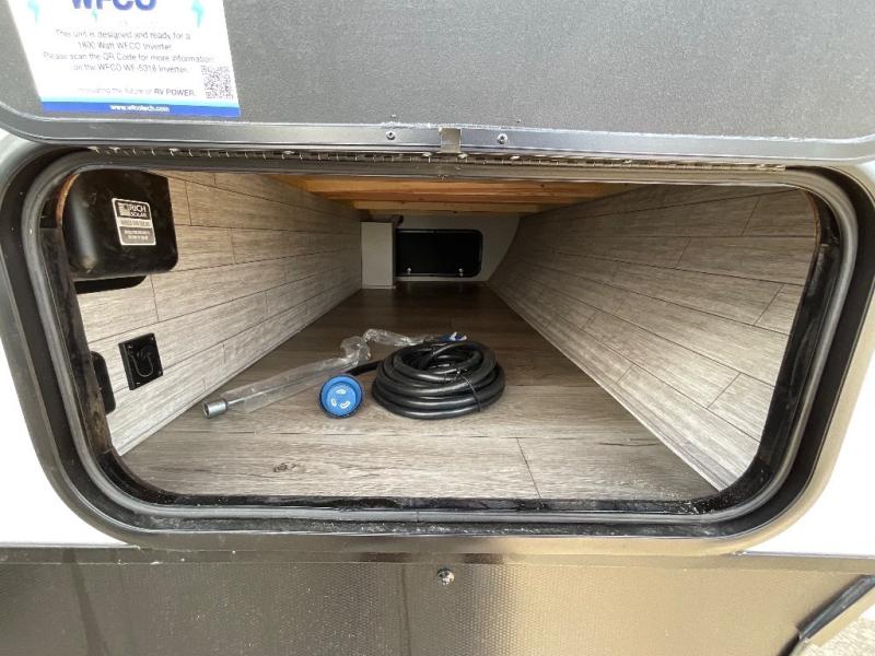 You will love how conventional this travel trailer is! If you want to travel for just a weekend or even more, you won't have to worry since you have all the amenities you need. This model has a queen bed with dual end wardrobes for some extra storage so you can neatly store your clothes. There is also a slide with theater seating, and a booth dinette to enjoy your favorite breakfast. A rear corner kitchen features everything you need to cook indoors, or you can head outside to use the outdoor Camper Kitchen with mini fridge and griddle. A rear corner bath features a 24" x 32" shower, toilet and sink. Outside, you'll find a 17' power awning with multicolor LED lights and exterior storage for camp gear.