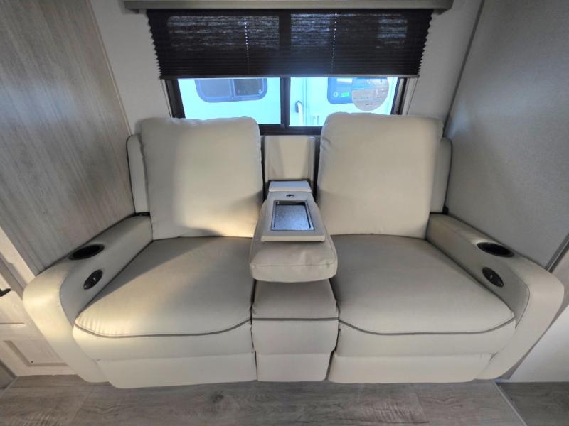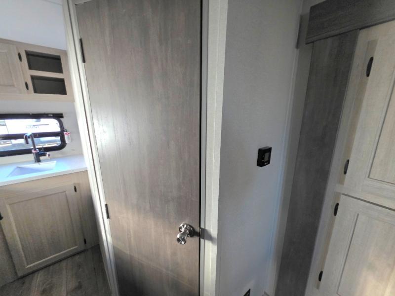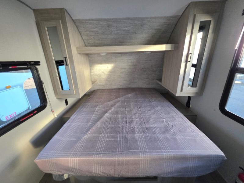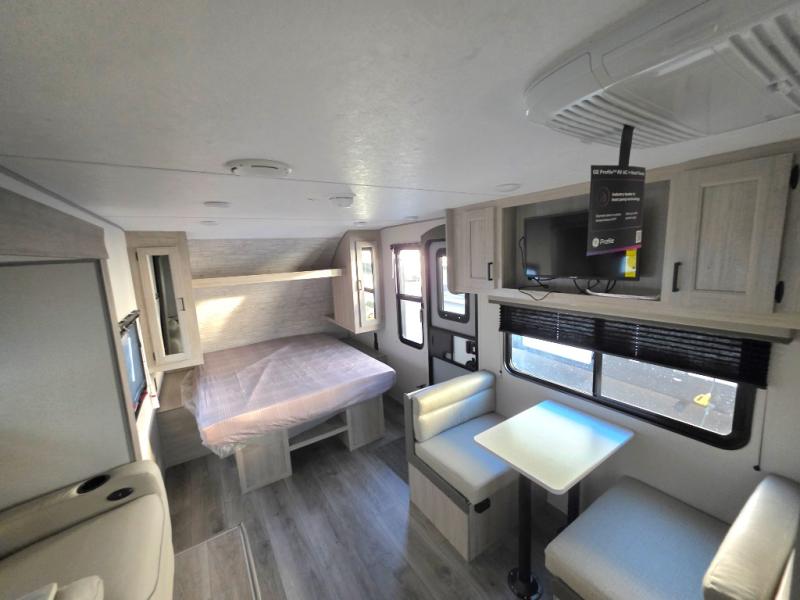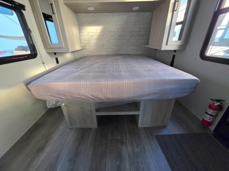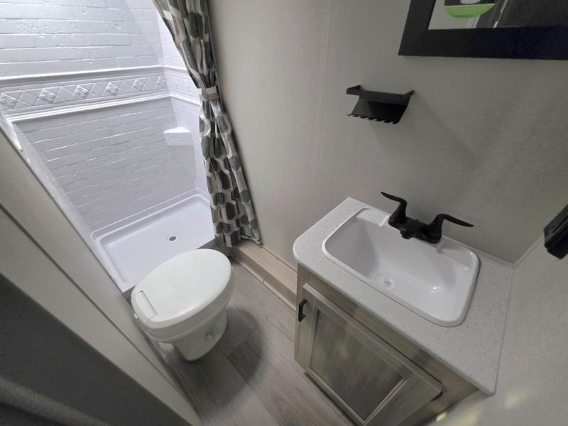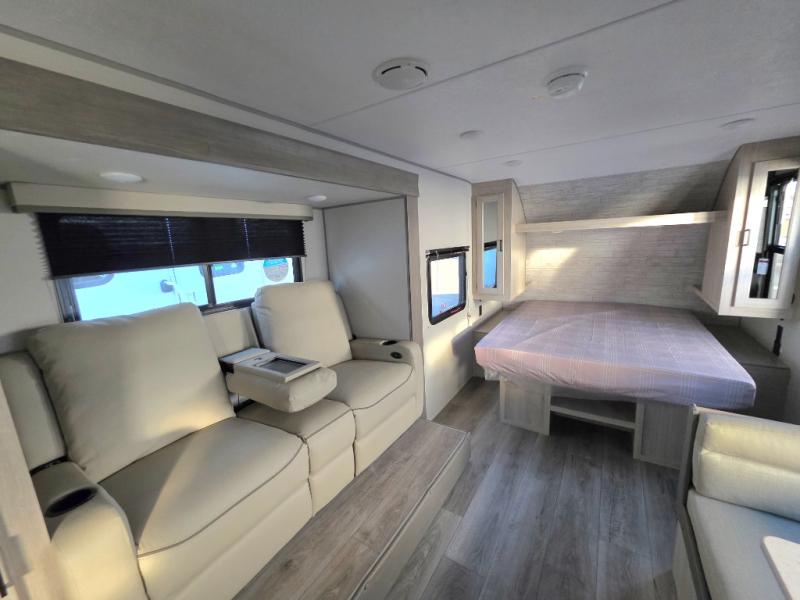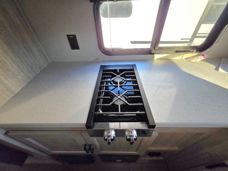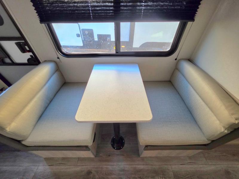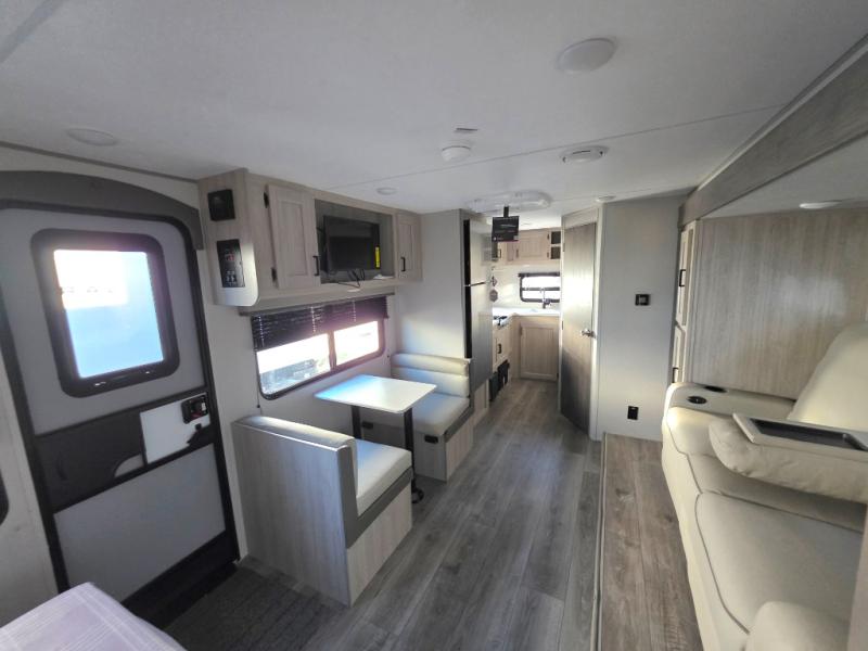 You will love how conventional this travel trailer is! If you want to travel for just a weekend or even more, you won't have to worry since you have all the amenities you need. This model has a queen bed with dual end wardrobes for some extra storage so you can neatly store your clothes. There is also a slide with theater seating, and a booth dinette to enjoy your favorite breakfast. A rear corner kitchen features everything you need to cook indoors, or you can head outside to use the outdoor Camper Kitchen with mini fridge and griddle. A rear corner bath features a 24" x 32" shower, toilet and sink. Outside, you'll find a 17' power awning with multicolor LED lights and exterior storage for camp gear.