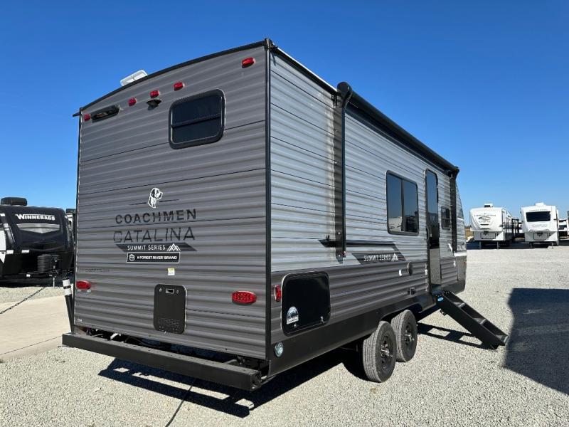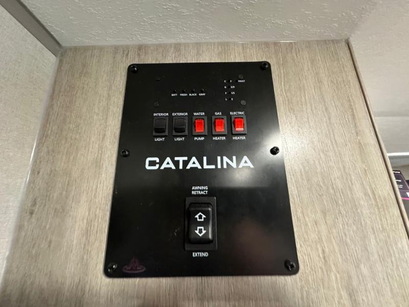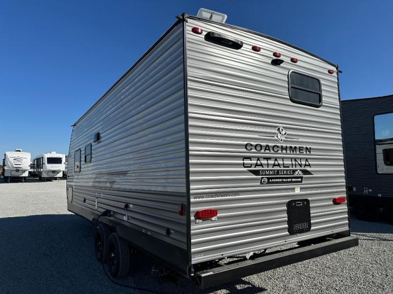 With any Catalina Summit Series 8 by Coachmen you will enjoy an affordable travel trailer packed with at-home comforts! The solid construction includes a Norco electromagnetic powder coated chassis, a seamless Alpha roof membrane, and full length frame outriggers for maximum support and durability. Dexter EZ lube axles with leaf spring suspension and self adjusting brakes provide smooth towing from home to campground, and the premium exterior graphics package is sure to turn heads as you travel down the highway. You will love the features included, such as a JBL Aura Cube media center, magnetic baggage door latches, 4,000 lumen interior touch lighting, LCI One Control, and the list goes on!