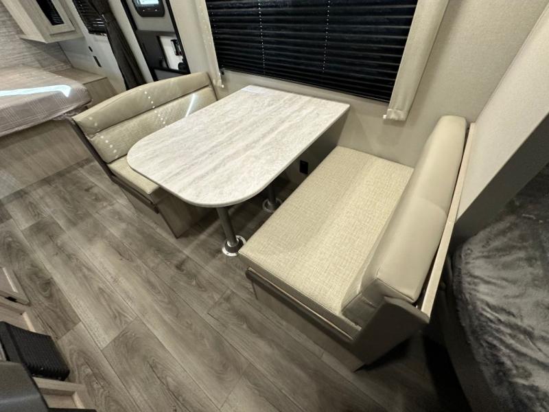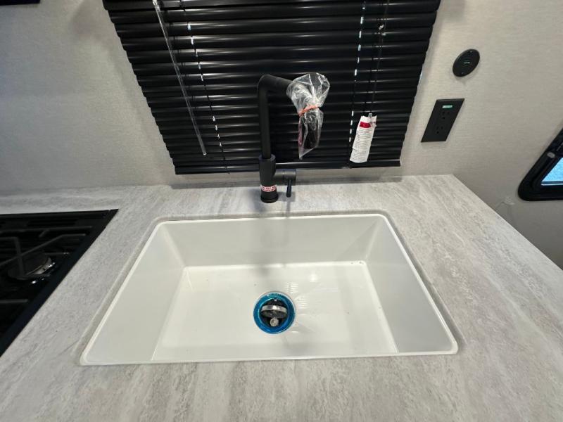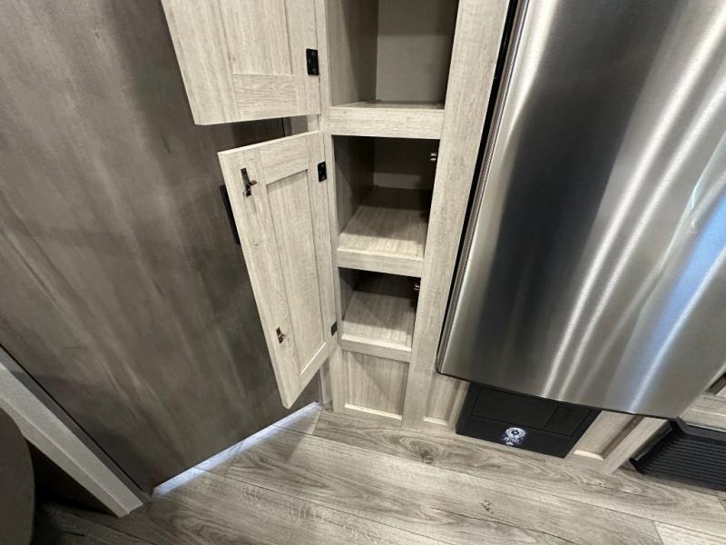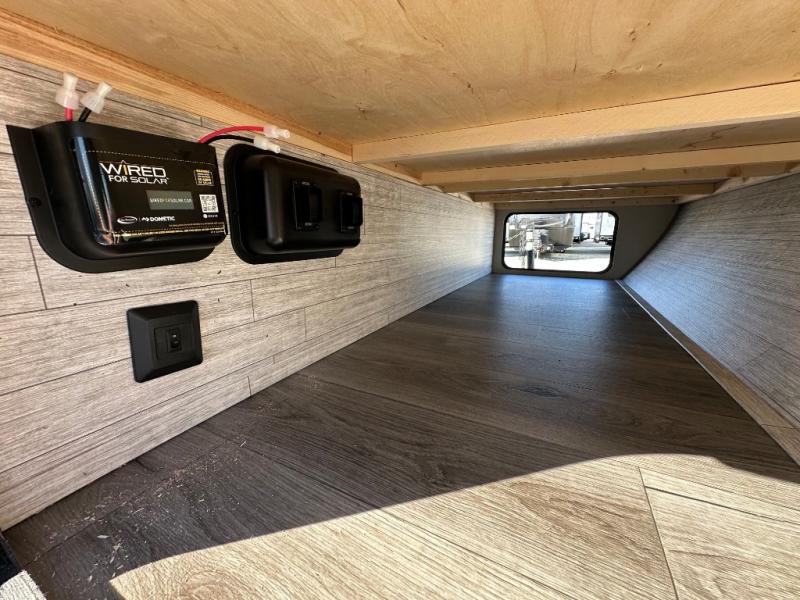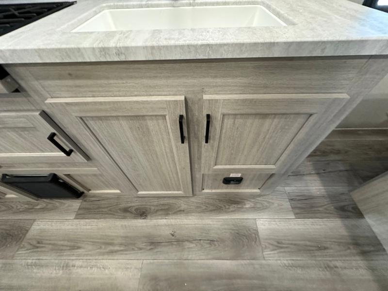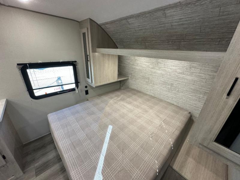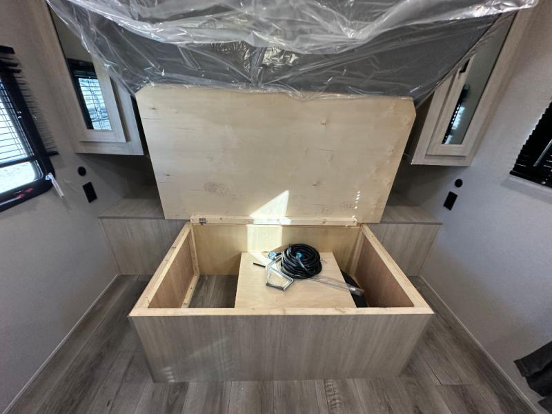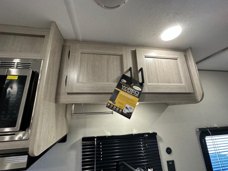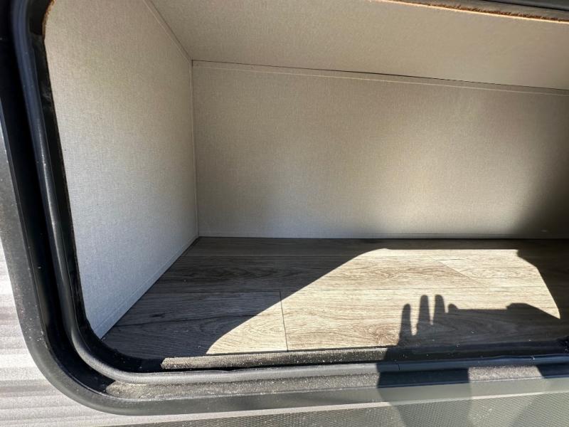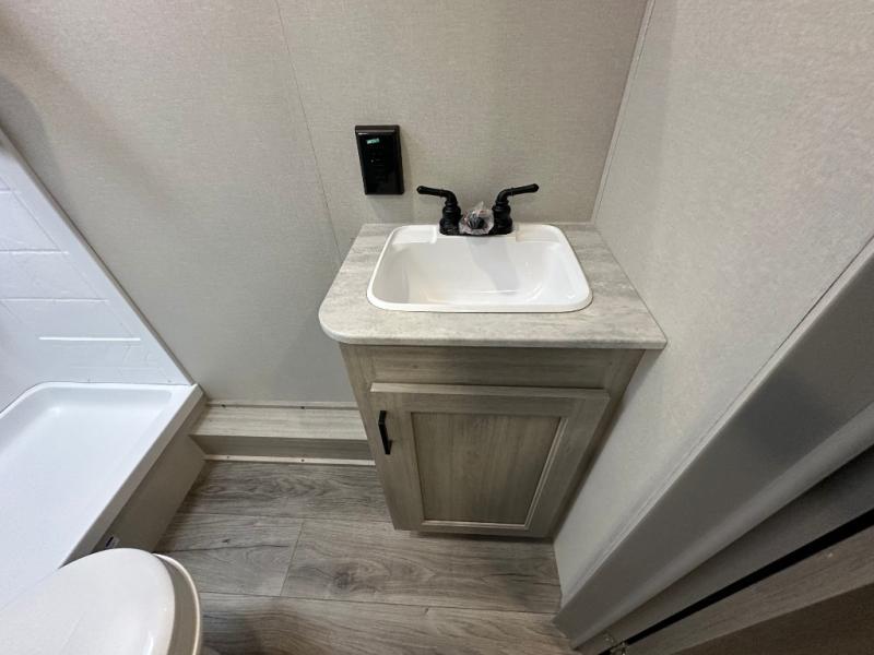 You'll love camping and spending time together in this travel trailer for seven! The bunk beds include under-bunk storage to keep bags out of the way, and the full bath is right next to the bunks for easy nighttime use. A semi-private bedroom up front includes a privacy curtain so you can get dressed each morning, and there are dual wardrobes to keep your things tidy. The chef of your group can whip up breakfast each morning on the three burner cooktop or in the GE stainless microwave, and there is a GE 10.7 cu. ft. 12V refrigerator to keep perishables fresh! A booth dinette provides a place to dine, or you can take your plate outdoors to sit under the 15' power awning with multicolored lights!