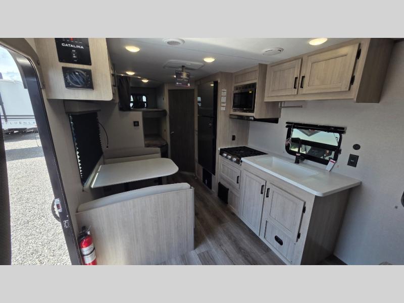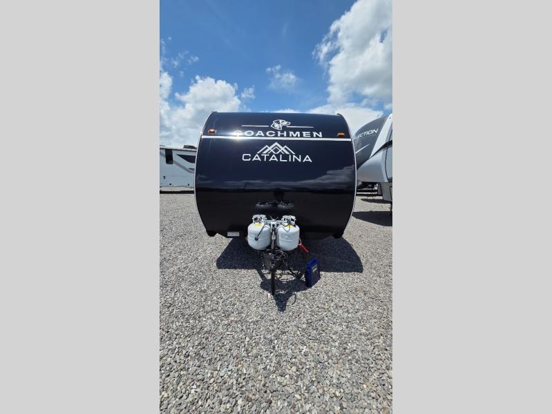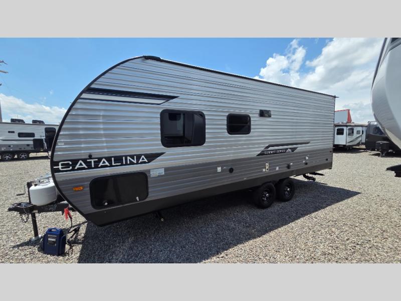 With any Catalina Summit Series 8 by Coachmen you will enjoy an affordable travel trailer packed with at-home comforts! The solid construction includes a Norco electromagnetic powder coated chassis, a seamless Alpha roof membrane, and full length frame outriggers for maximum support and durability. EZ lube axles with leaf spring suspension and self adjusting brakes provide smooth towing from home to campground, and the premium exterior graphics package is sure to turn heads as you travel down the highway. You will love the features included, such as a JBL Aura Cube media center, magnetic baggage door latches, 4,000 lumen interior touch lighting, and the list goes on!