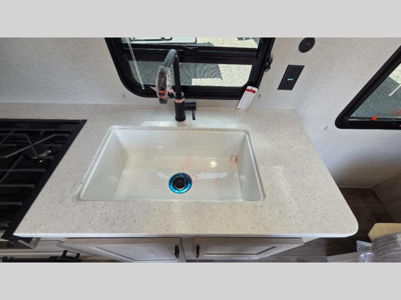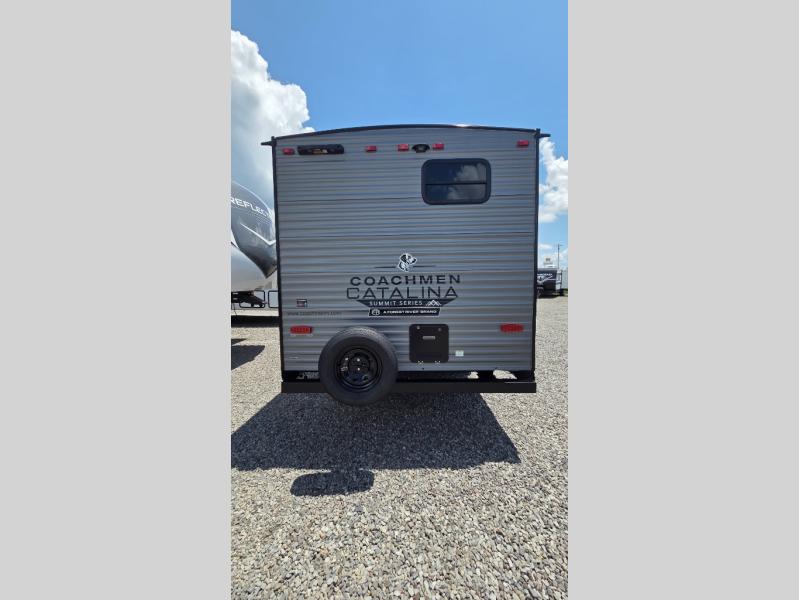 With any Catalina Summit Series 8 by Coachmen you will enjoy an affordable travel trailer packed with at-home comforts! The solid construction includes a Norco electromagnetic powder coated chassis, a seamless Alpha roof membrane, and full length frame outriggers for maximum support and durability. EZ lube axles with leaf spring suspension and self adjusting brakes provide smooth towing from home to campground, and the premium exterior graphics package is sure to turn heads as you travel down the highway. You will love the features included, such as a JBL Aura Cube media center, magnetic baggage door latches, 4,000 lumen interior touch lighting, and the list goes on!