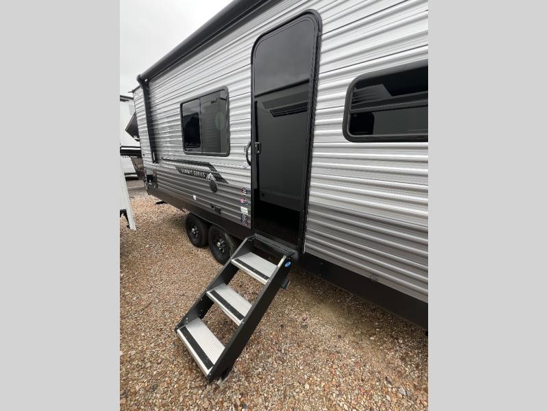 With any Catalina Summit Series 8 by Coachmen you will enjoy an affordable travel trailer packed with at-home comforts! The solid construction includes a Norco electromagnetic powder coated chassis, a seamless Alpha roof membrane, and full length frame outriggers for maximum support and durability. EZ lube axles with leaf spring suspension and self adjusting brakes provide smooth towing from home to campground, and the premium exterior graphics package is sure to turn heads as you travel down the highway. You will love the features included, such as a JBL Aura Cube media center, magnetic baggage door latches, 4,000 lumen interior touch lighting, and the list goes on!