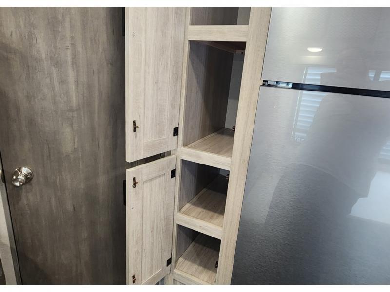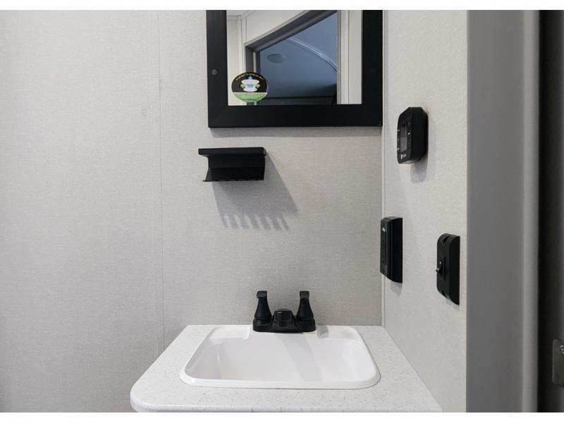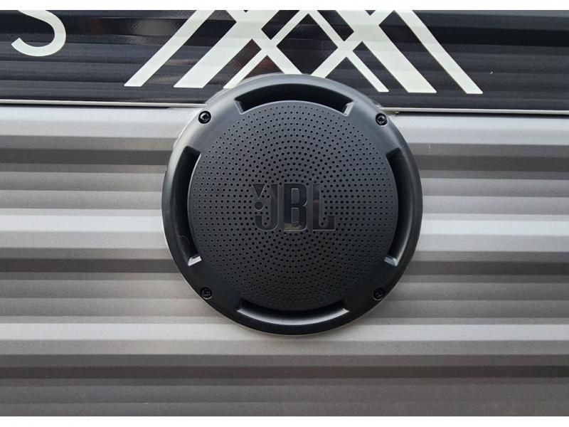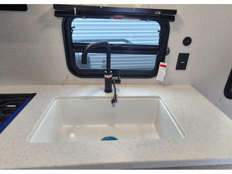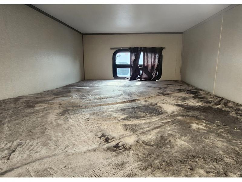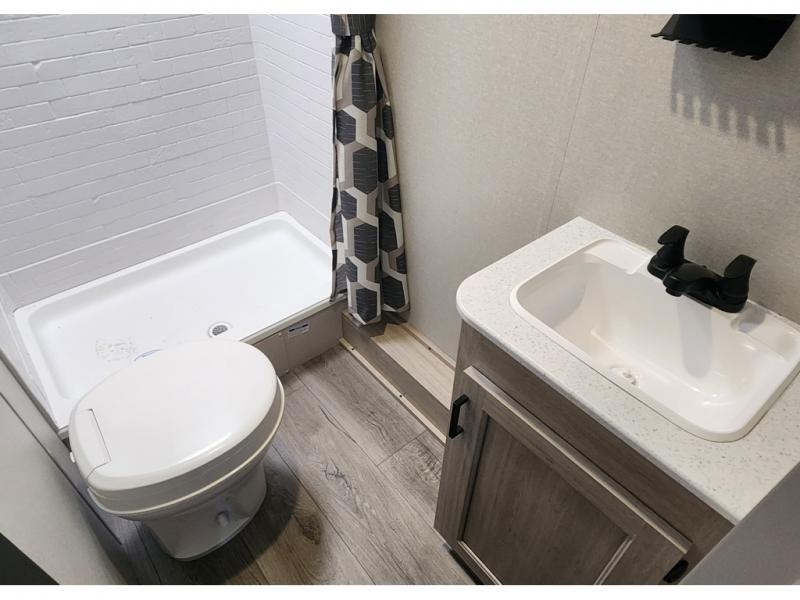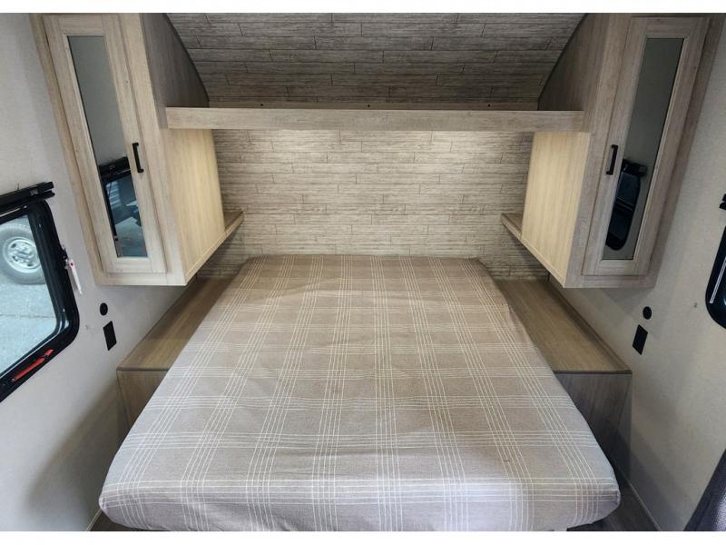 You'll love camping and spending time together in this travel trailer for seven! The bunk beds include under-bunk storage to keep bags out of the way, and the full bath is right next to the bunks for easy nighttime use. A semi-private bedroom up front includes a privacy curtain so you can get dressed each morning, and there are dual wardrobes to keep your things tidy. The chef of your group can whip up breakfast each morning on the three burner cooktop or in the GE stainless microwave, and there is a GE 10.7 cu. ft. 12V refrigerator to keep perishables fresh! A booth dinette provides a place to dine, or you can take your plate outdoors to sit under the 15' power awning with multicolored lights!