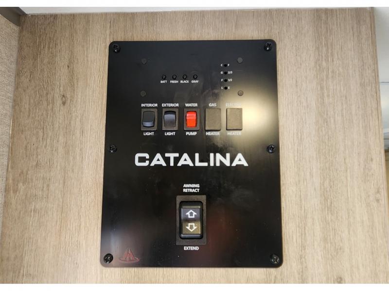 With any Catalina Summit Series 8 by Coachmen you will enjoy an affordable travel trailer packed with at-home comforts! The solid construction includes a Norco electromagnetic powder coated chassis, a seamless Alpha roof membrane, and full length frame outriggers for maximum support and durability. EZ lube axles with leaf spring suspension and self adjusting brakes provide smooth towing from home to campground, and the premium exterior graphics package is sure to turn heads as you travel down the highway. You will love the features included, such as a JBL Aura Cube media center, magnetic baggage door latches, 4,000 lumen interior touch lighting, and the list goes on!