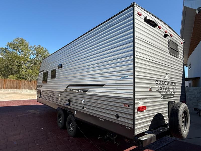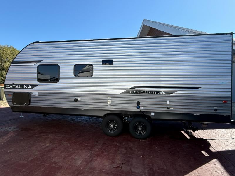 With any Catalina Summit Series 8 by Coachmen you will enjoy an affordable travel trailer packed with at-home comforts! The solid construction includes a Norco electromagnetic powder coated chassis, a seamless Alpha roof membrane, and full length frame outriggers for maximum support and durability. EZ lube axles with leaf spring suspension and self-adjusting brakes provide smooth towing from home to campground, and the premium exterior graphics package is sure to turn heads as you travel down the highway. You will love the features included, such as a JBL Aura Cube media center, magnetic baggage door latches, 4,000 lumen interior touch lighting, and the list goes on!