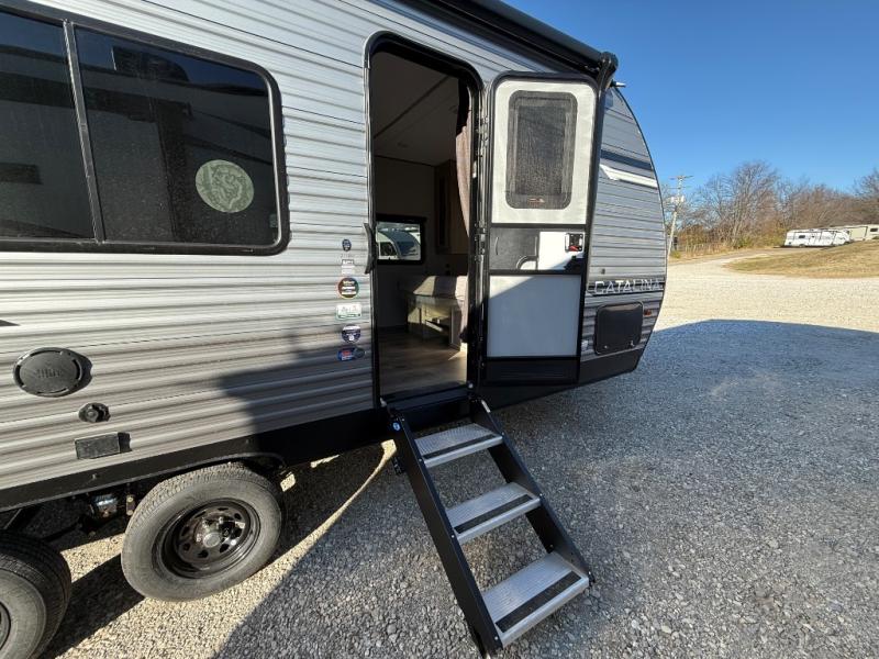 With any Catalina Summit Series 8 by Coachmen you will enjoy an affordable travel trailer packed with at-home comforts! The solid construction includes a Norco electromagnetic powder coated chassis, a seamless Alpha roof membrane, and full length frame outriggers for maximum support and durability. EZ lube axles with leaf spring suspension and self-adjusting brakes provide smooth towing from home to campground, and the premium exterior graphics package is sure to turn heads as you travel down the highway. You will love the features included, such as a JBL Aura Cube media center, magnetic baggage door latches, 4,000 lumen interior touch lighting, and the list goes on!
