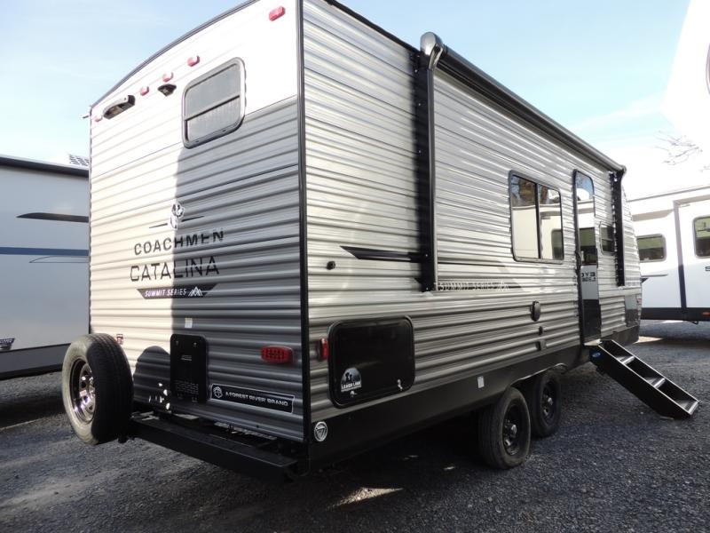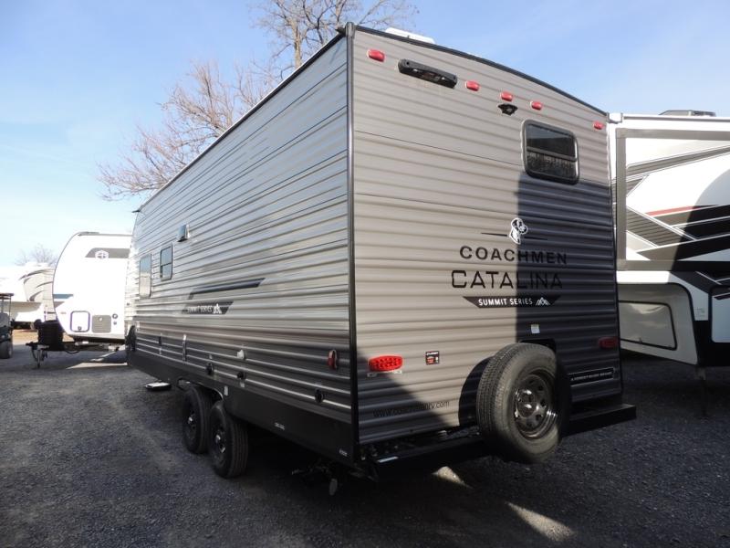 With any Catalina Summit Series 8 by Coachmen you will enjoy an affordable travel trailer packed with at-home comforts! The solid construction includes a Norco electromagnetic powder coated chassis, a seamless Alpha roof membrane, and full length frame outriggers for maximum support and durability. EZ lube axles with leaf spring suspension and self-adjusting brakes provide smooth towing from home to campground, and the premium exterior graphics package is sure to turn heads as you travel down the highway. You will love the features included, such as a JBL Aura Cube media center, magnetic baggage door latches, 4,000 lumen interior touch lighting, and the list goes on!