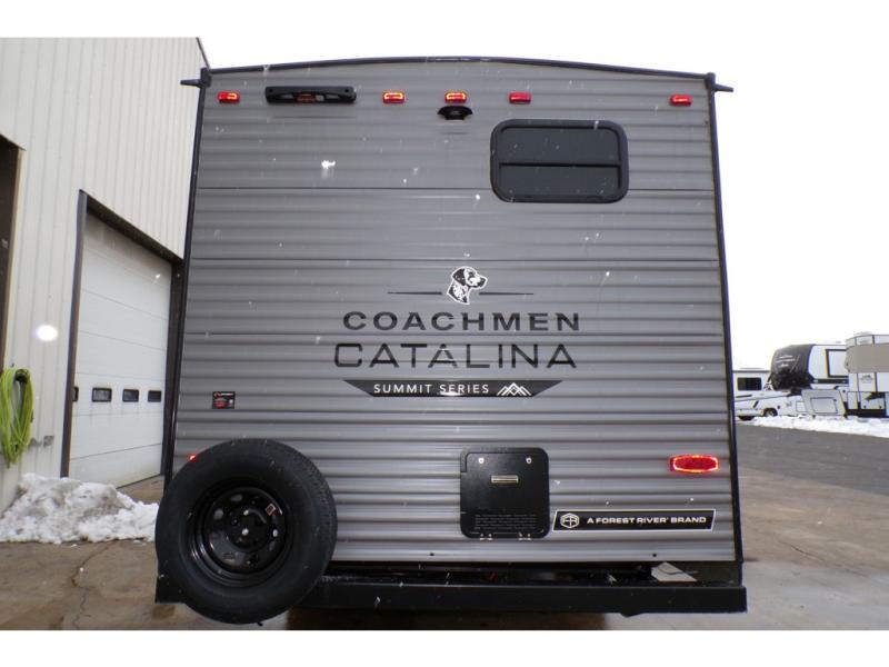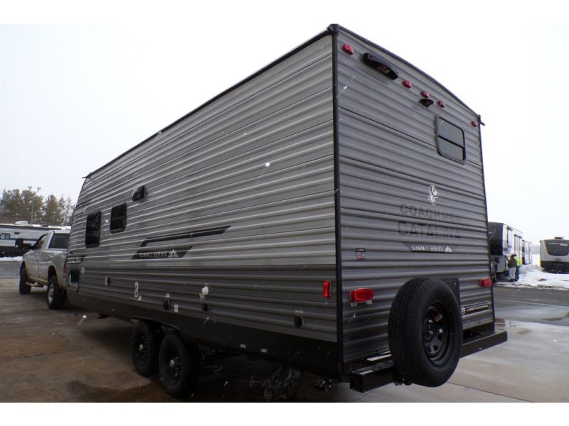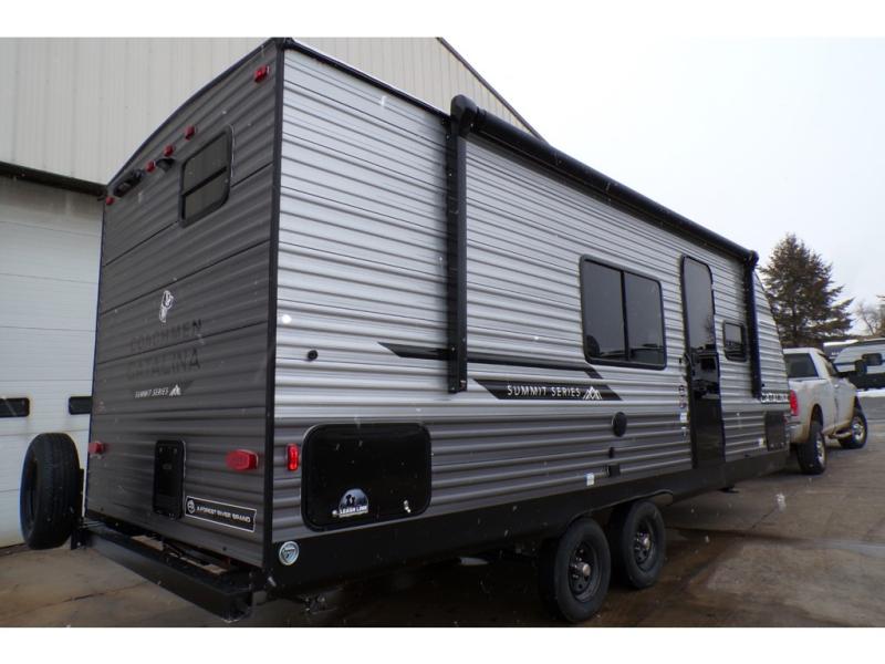 With any Catalina Summit Series 8 by Coachmen you will enjoy an affordable travel trailer packed with at-home comforts! The solid construction includes a Norco electromagnetic powder coated chassis, a seamless Alpha roof membrane, and full length frame outriggers for maximum support and durability. EZ lube axles with leaf spring suspension and self-adjusting brakes provide smooth towing from home to campground, and the premium exterior graphics package is sure to turn heads as you travel down the highway. You will love the features included, such as a JBL Aura Cube media center, magnetic baggage door latches, 4,000 lumen interior touch lighting, and the list goes on!
