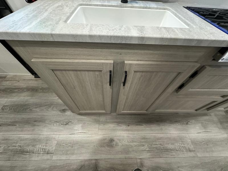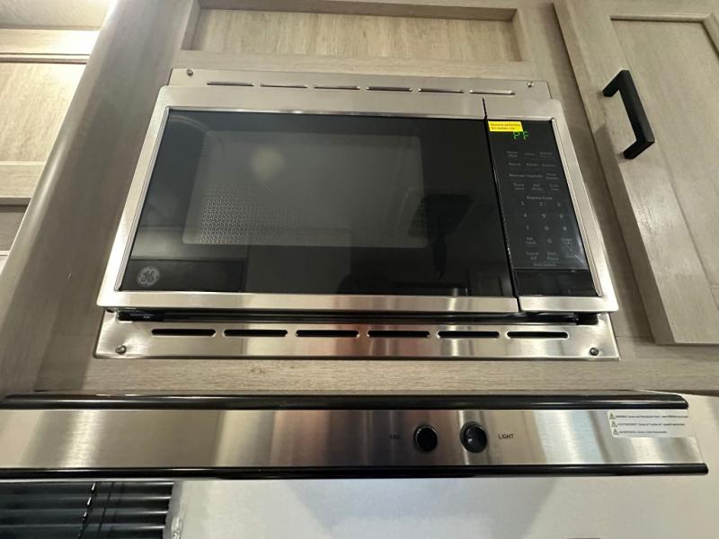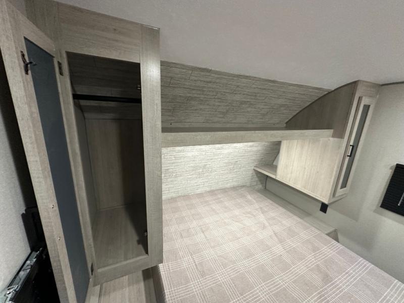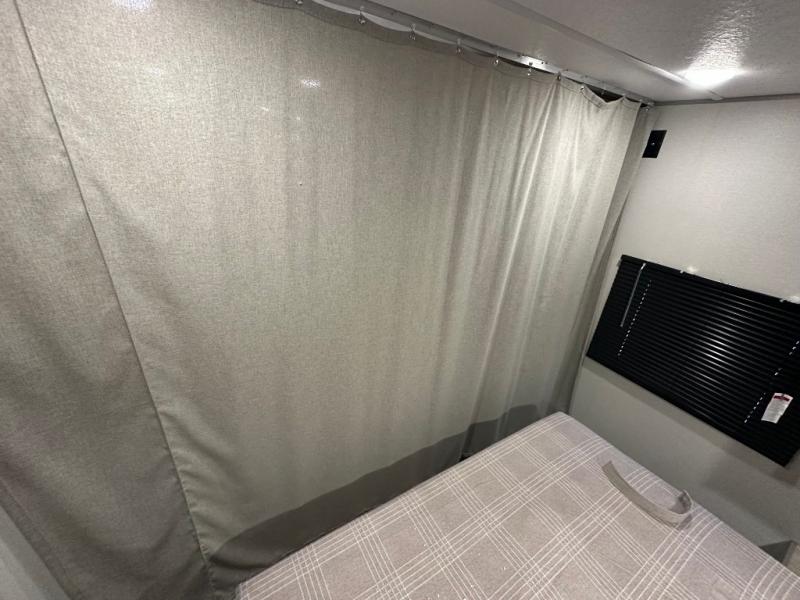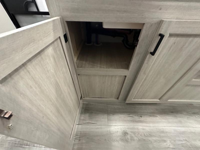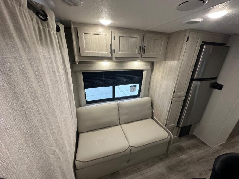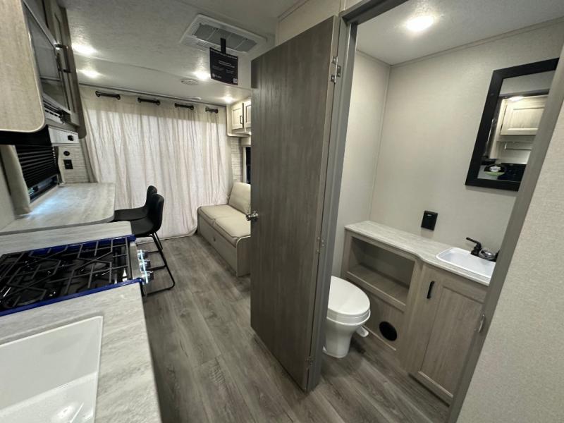 If you are looking for comfort this travel trailer is the one for you due to the amazing front bedroom. Have a relaxing time on the queen bed, which has dual bedside wardrobes and an overhead shelf perfect for storing all your belongings. Moving to the living room, you can take a rest on the 60" sofa jack knife or if you prefer, have a drink or two on the bar top for those hot days. Also for days where the temperature rises, take a refreshing bath in the full bathroom. Finally, this model has an optional 38" dinette, ideal to share your everyday meals with your loved ones.