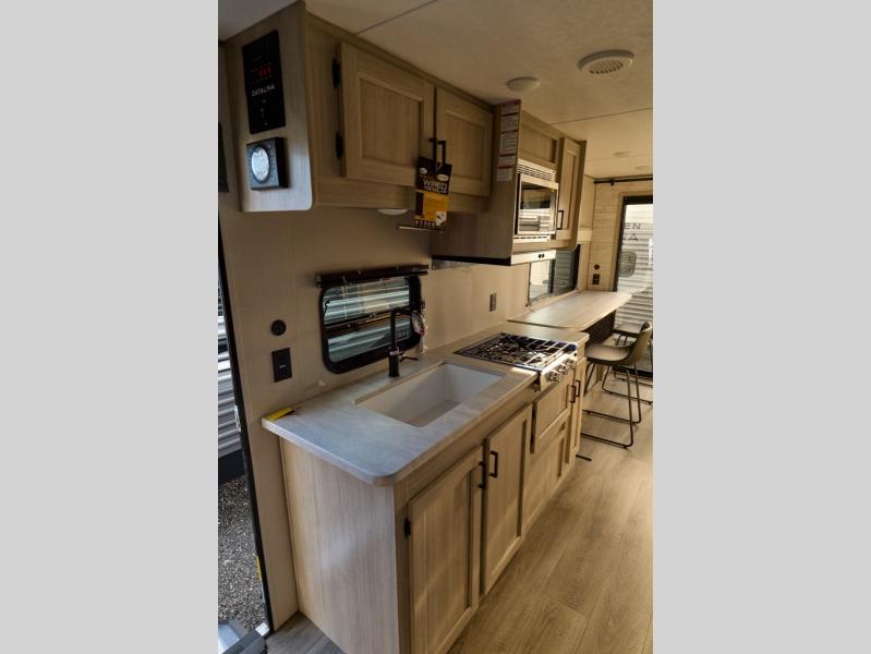 With any Catalina Summit Series 8 by Coachmen you will enjoy an affordable travel trailer packed with at-home comforts! The solid construction includes a Norco electromagnetic powder coated chassis, a seamless Alpha roof membrane, and full length frame outriggers for maximum support and durability. Dexter EZ lube axles with leaf spring suspension and self adjusting brakes provide smooth towing from home to campground, and the premium exterior graphics package is sure to turn heads as you travel down the highway. You will love the features included, such as a JBL Aura Cube media center, magnetic baggage door latches, 4,000 lumen interior touch lighting, and the list goes on!