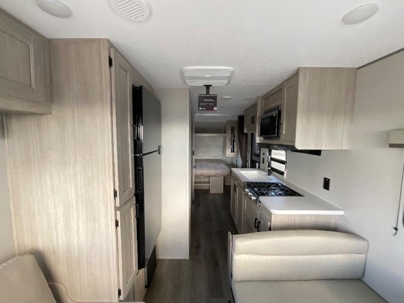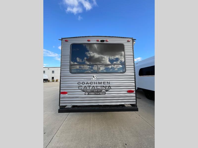 With any Catalina Summit Series 8 by Coachmen, you will enjoy an affordable travel trailer packed with at-home comforts! The solid construction includes a Norco electromagnetic powder coated chassis, a seamless Alpha roof membrane, and full length frame outriggers for maximum support and durability. EZ lube axles with leaf spring suspension and self-adjusting brakes provide smooth towing from home to campground, and the premium exterior graphics package is sure to turn heads as you travel down the highway. You will love the features included, such as a JBL Aura Cube media center, magnetic baggage door latches, 4,000 lumen interior touch lighting, and the list goes on!