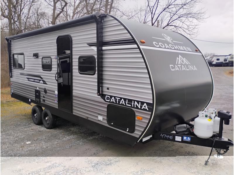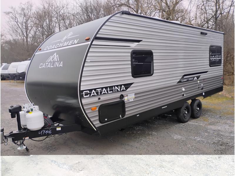 With any Catalina Summit Series 8 by Coachmen, you will enjoy an affordable travel trailer packed with at-home comforts! The solid construction includes a Norco electromagnetic powder coated chassis, a seamless Alpha roof membrane, and full length frame outriggers for maximum support and durability. EZ lube axles with leaf spring suspension and self-adjusting brakes provide smooth towing from home to campground, and the premium exterior graphics package is sure to turn heads as you travel down the highway. You will love the features included, such as a JBL Aura Cube media center, magnetic baggage door latches, 4,000 lumen interior touch lighting, and the list goes on!