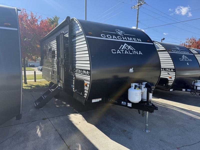 With any Catalina Summit Series 8 by Coachmen, you will enjoy an affordable travel trailer packed with at-home comforts! The solid construction includes a Norco electromagnetic powder coated chassis, a seamless Alpha roof membrane, and full length frame outriggers for maximum support and durability. EZ lube axles with leaf spring suspension and self-adjusting brakes provide smooth towing from home to campground, and the premium exterior graphics package is sure to turn heads as you travel down the highway. You will love the features included, such as a JBL Aura Cube media center, magnetic baggage door latches, 4,000 lumen interior touch lighting, and the list goes on!