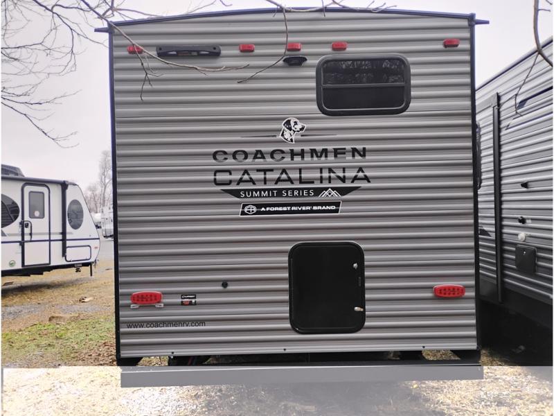 With any Catalina Summit Series 8 by Coachmen you will enjoy an affordable travel trailer packed with at-home comforts! The solid construction includes a Norco electromagnetic powder coated chassis, a seamless Alpha roof membrane, and full length frame outriggers for maximum support and durability. EZ lube axles with leaf spring suspension and self-adjusting brakes provide smooth towing from home to campground, and the premium exterior graphics package is sure to turn heads as you travel down the highway. You will love the features included, such as a JBL Aura Cube media center, magnetic baggage door latches, 4,000 lumen interior touch lighting, and the list goes on!