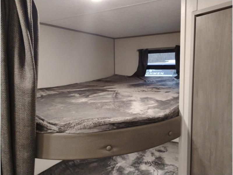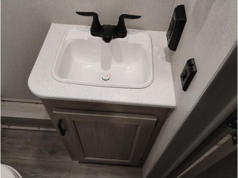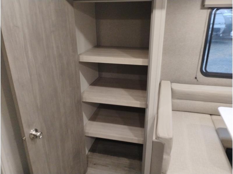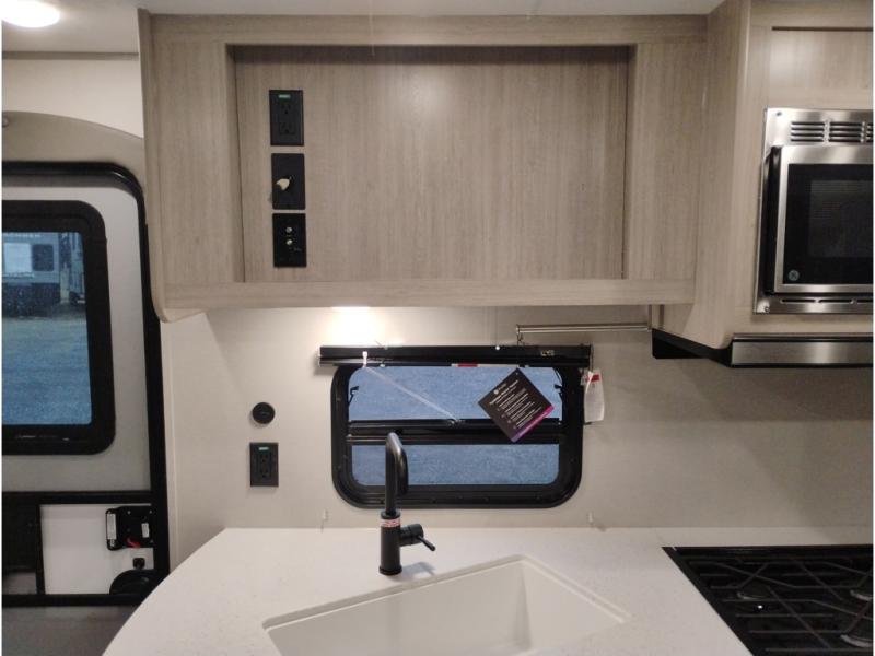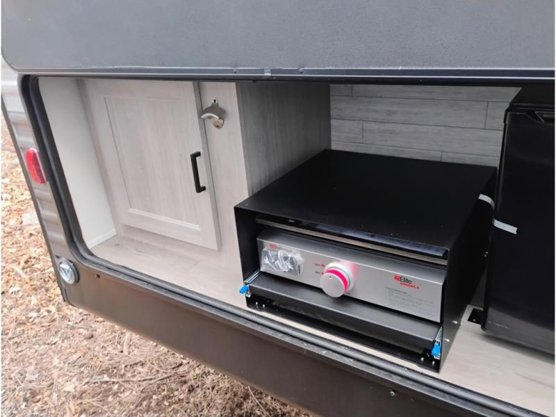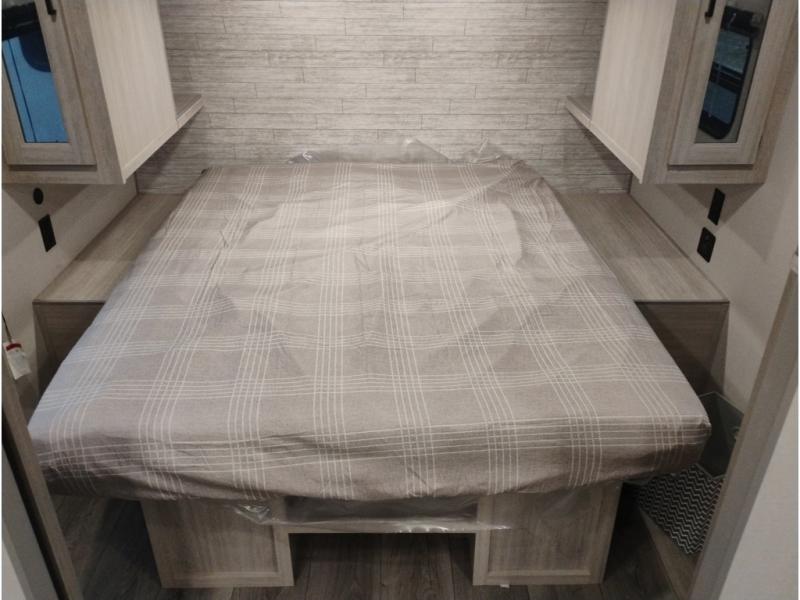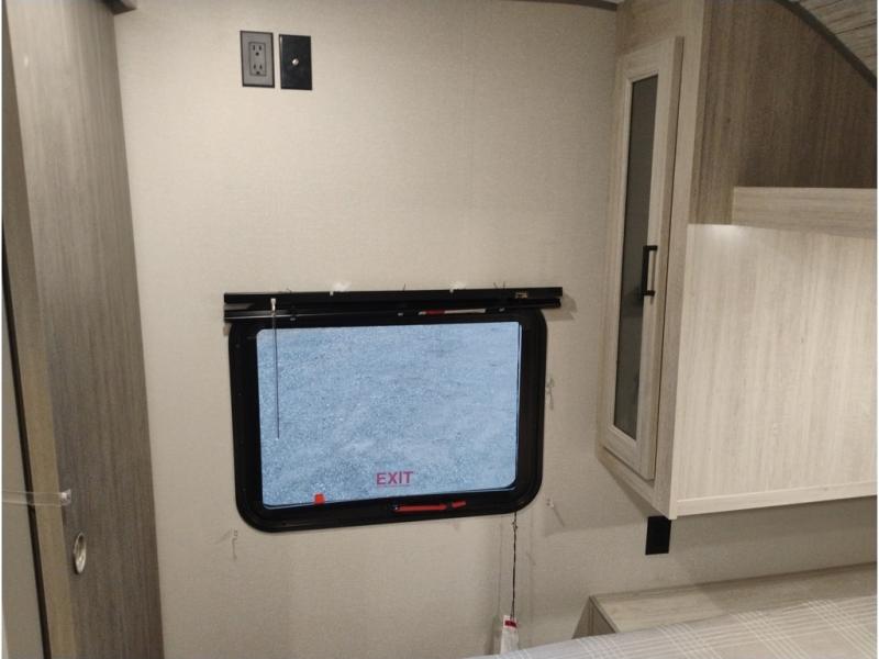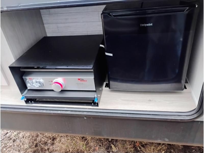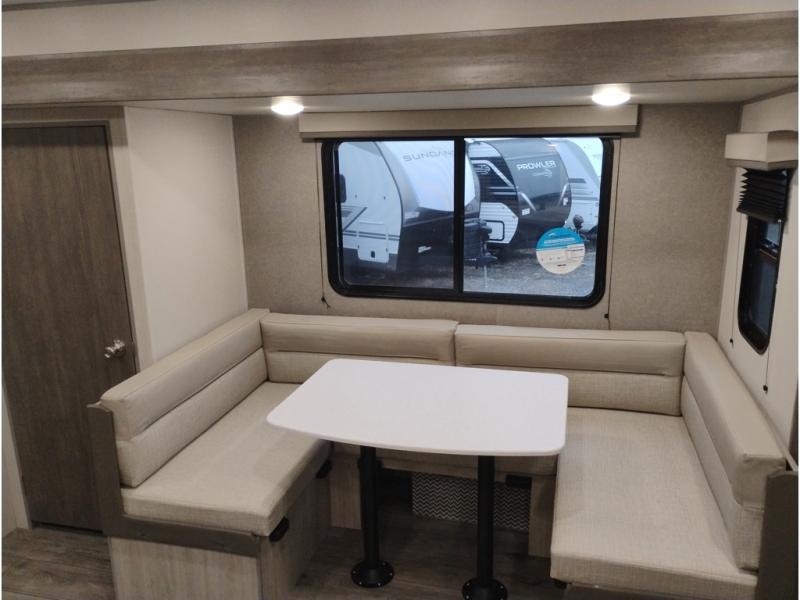 This is the perfect mid-size travel trailer for you and your family! The double-size bunks offer a comfortable sleeping space for the kids and you will have your own private sleeping space with a queen bed in the front bedroom. Freshen up each day in the rear corner bathroom with the tub/shower and a mirror to get ready each morning. You can prepare your best home cooked meals with the GE stainless three burner cooktop and GE stainless 10.7 cu. ft. 12V refrigerator, then enjoy them together at the u-shaped dinette. There is also a large pantry to store all your goods. Don't leave any of your outdoor gear behind either, thanks to the front pass-through storage area and the exterior outside storage area. You could even add the optional outside camper kitchen to grill the catch of the day on the pull out griddle!