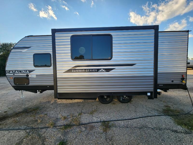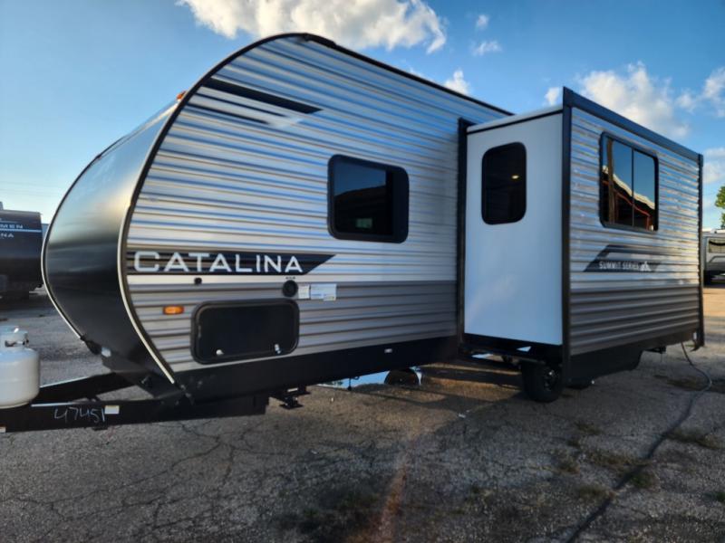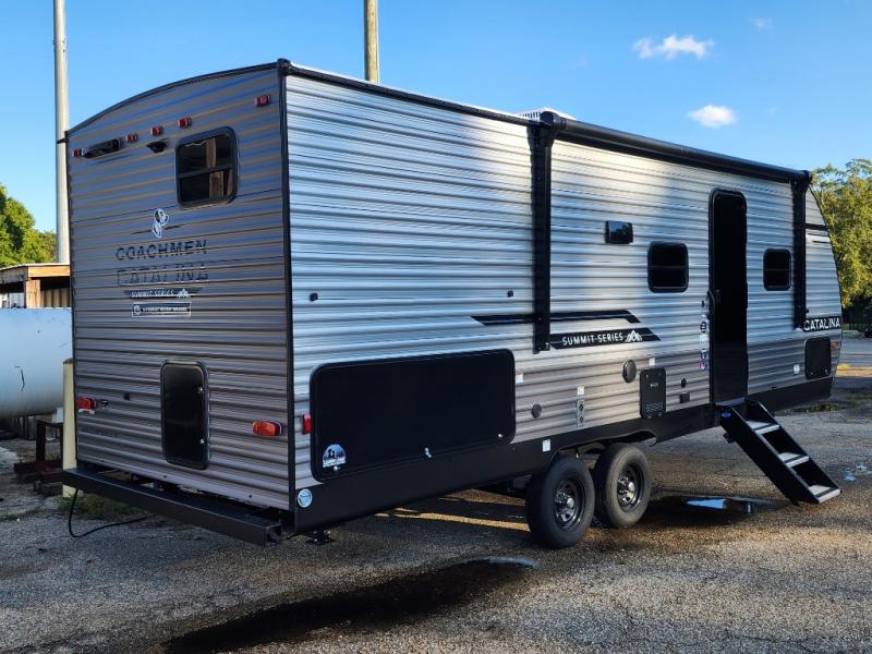 With any Catalina Summit Series 8 by Coachmen you will enjoy an affordable travel trailer packed with at-home comforts! The solid construction includes a Norco electromagnetic powder coated chassis, a seamless Alpha roof membrane, and full length frame outriggers for maximum support and durability. EZ lube axles with leaf spring suspension and self-adjusting brakes provide smooth towing from home to campground, and the premium exterior graphics package is sure to turn heads as you travel down the highway. You will love the features included, such as a JBL Aura Cube media center, magnetic baggage door latches, 4,000 lumen interior touch lighting, and the list goes on!