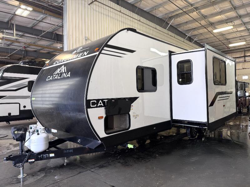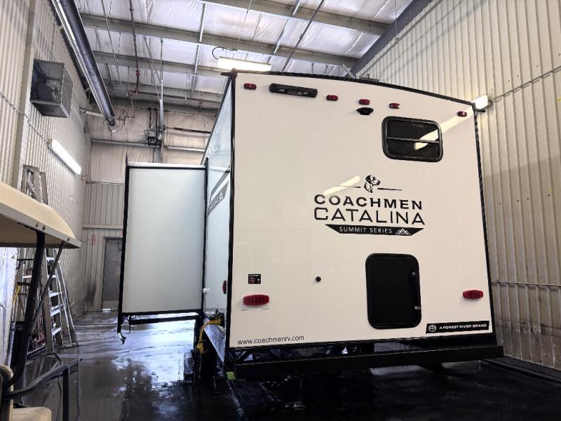 With any Catalina Summit Series 8 by Coachmen you will enjoy an affordable travel trailer packed with at-home comforts! The solid construction includes a Norco electromagnetic powder coated chassis, a seamless Alpha roof membrane, and full length frame outriggers for maximum support and durability. EZ lube axles with leaf spring suspension and self-adjusting brakes provide smooth towing from home to campground, and the premium exterior graphics package is sure to turn heads as you travel down the highway. You will love the features included, such as a JBL Aura Cube media center, magnetic baggage door latches, 4,000 lumen interior touch lighting, and the list goes on!